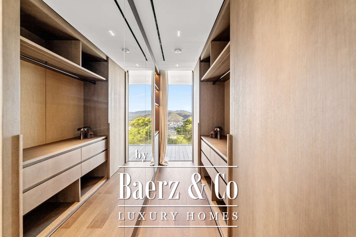 Outdoors, a landscaped garden developed by Eivissa Garden encircles a saltwater pool, expansive terraces, and mature greenery. Subtle lighting and an integrated music system transition the atmosphere effortlessly from day into night. The views from the terraces command the hills, valley, and sea, allowing for privacy and a sense of timeless Mediterranean living. Amenities include underfloor heating, air conditioning, gas fireplace, osmosis water system, private garage, and secure parking. Proximity to villages, beaches, and marinas ensures the pleasures of Ibiza remain within easy reach, while the home’s design promises quiet retreat and year-round comfort.