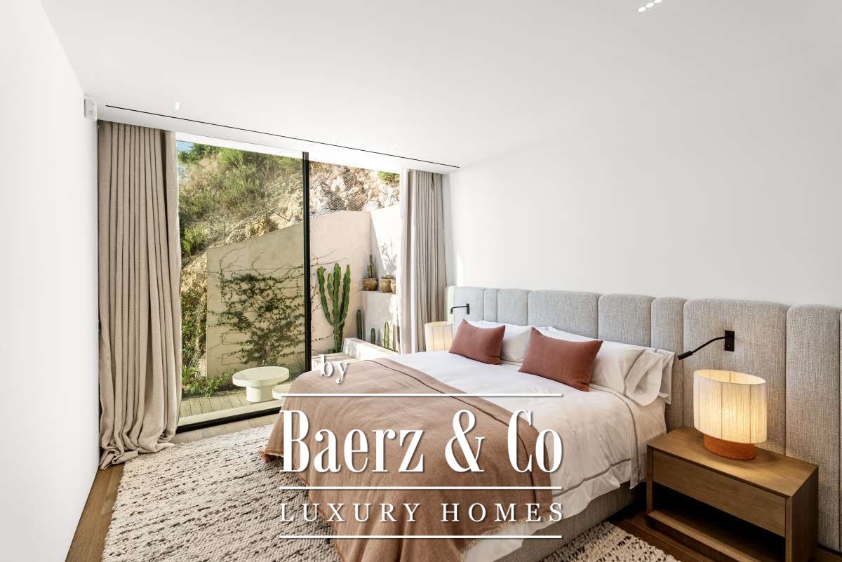 Villa Siesta with panoramic sea and valley views sets a new benchmark for discreet luxury in Ibiza. This newly built 650 m² villa is located near Santa Eulalia, set amidst undulating hills and Mediterranean greenery, delivering a sense of calm rarely encountered. From its vantage point, panoramic vistas stretch across the valley to the Mediterranean Sea, offering a visual experience that is both expansive and intimate.