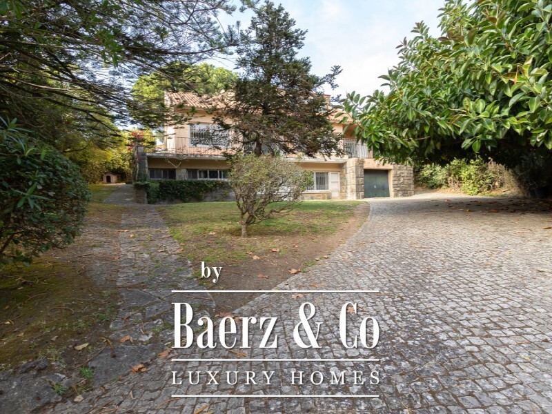 Villa Sintra with Monserrate Palace views is quietly anchored in Galamares, directly at the foot of the Sintra mountains. This 1960s villa unfolds across 600 sqm of gross construction on a 1,400 sqm plot, enveloped by gardens and framed by unobstructed vistas of the Monserrate Palace. The private area spans 380 sqm across three levels, offering both capacity and adaptability for refined living.