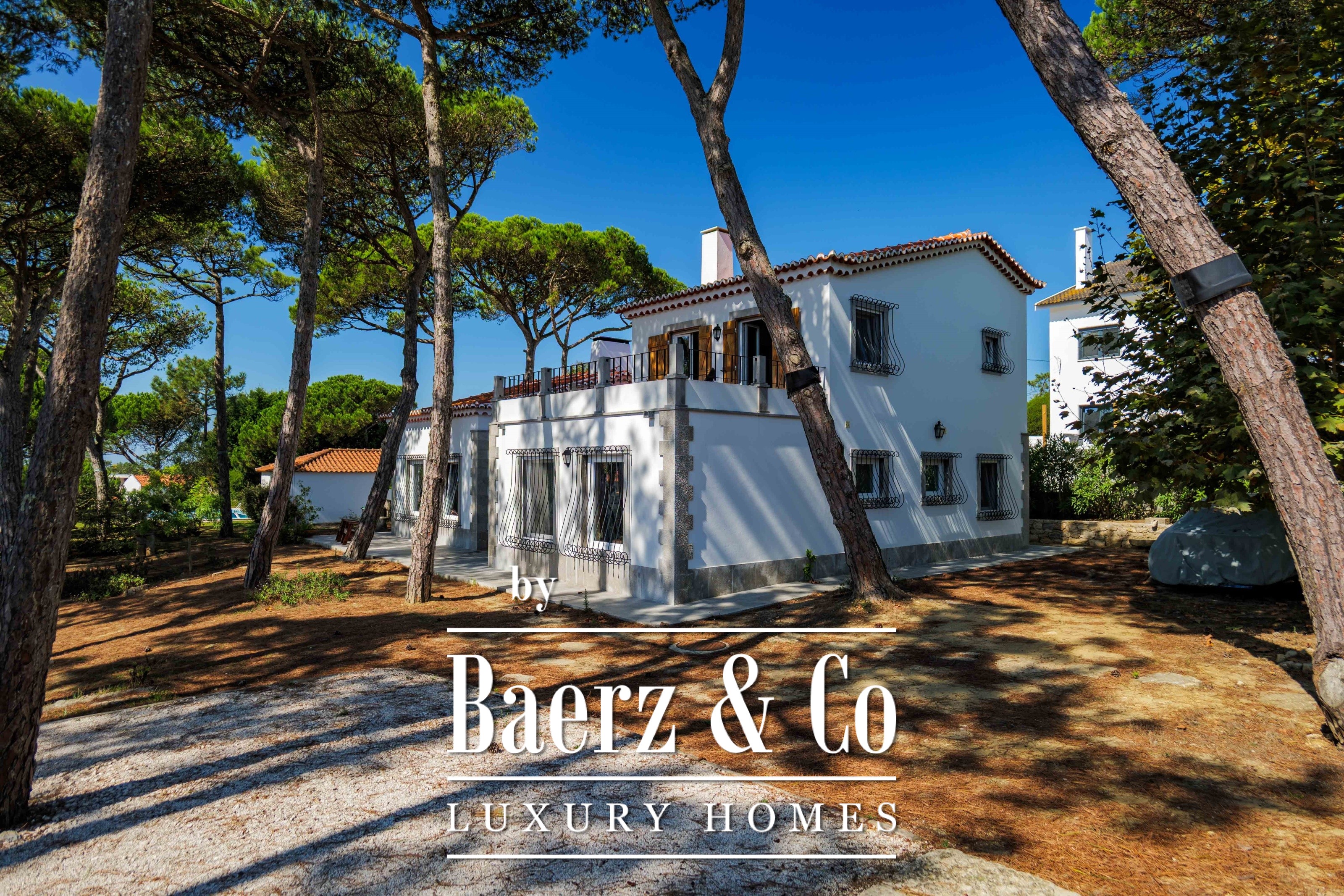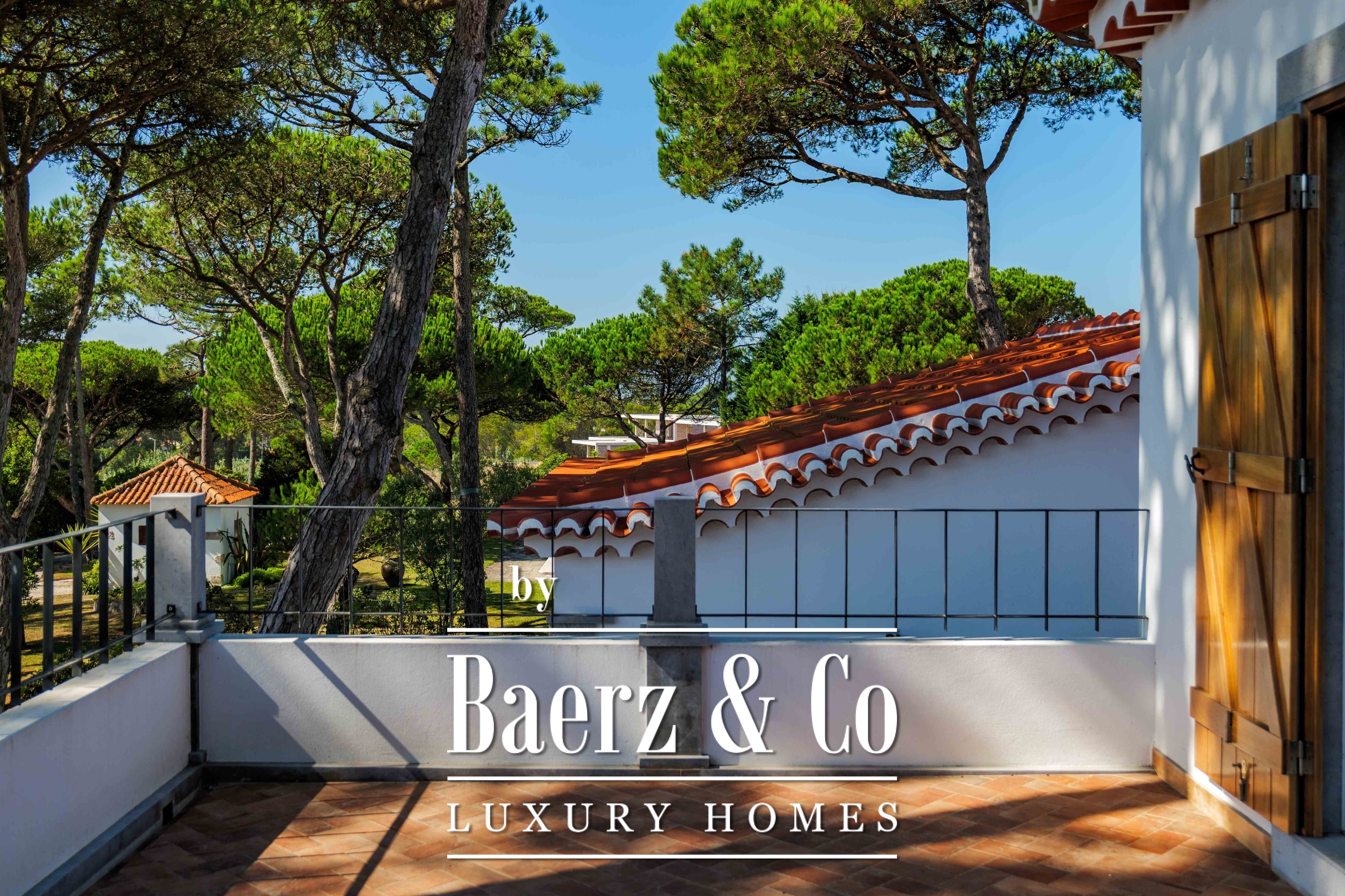 Villa Sintra with garden and sea views blends twentieth-century Portuguese architecture with contemporary sophistication. Set on 2,341 m² of landscaped gardens just five minutes from Praia do Magoito, the main house and guest accommodation are surrounded by mature pine trees under spacious skies.