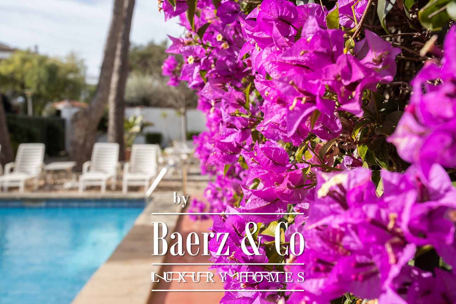 The atmosphere is shaped by the generous gardens and mature plantings that surround the residence. A large private pool, a broad porch with a barbecue area, and an inviting terrace create opportunities for gatherings, reinforced by the privacy afforded by the scale of the grounds. Direct sunlight permeates the interiors, most notably through rooms with balconies, inviting views of the Sitges horizon.