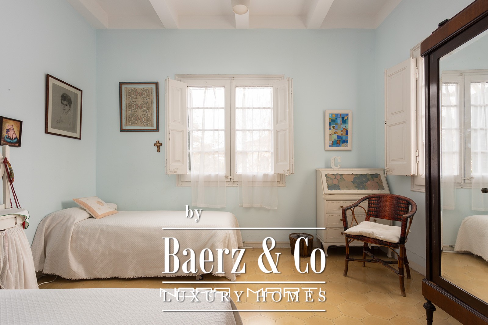Complementing the main house is an additional residence with two bedrooms, a bath, a garage, and a solarium, suited to guests or service. The situation, 100 meters from the beach and within walking distance of Sitges’ amenities, offers a balance of centrality and discretion rarely found in the region. For those seeking a property with provenance, ample space, and privacy, this historic house in Sitges stands as a distinctive opportunity.