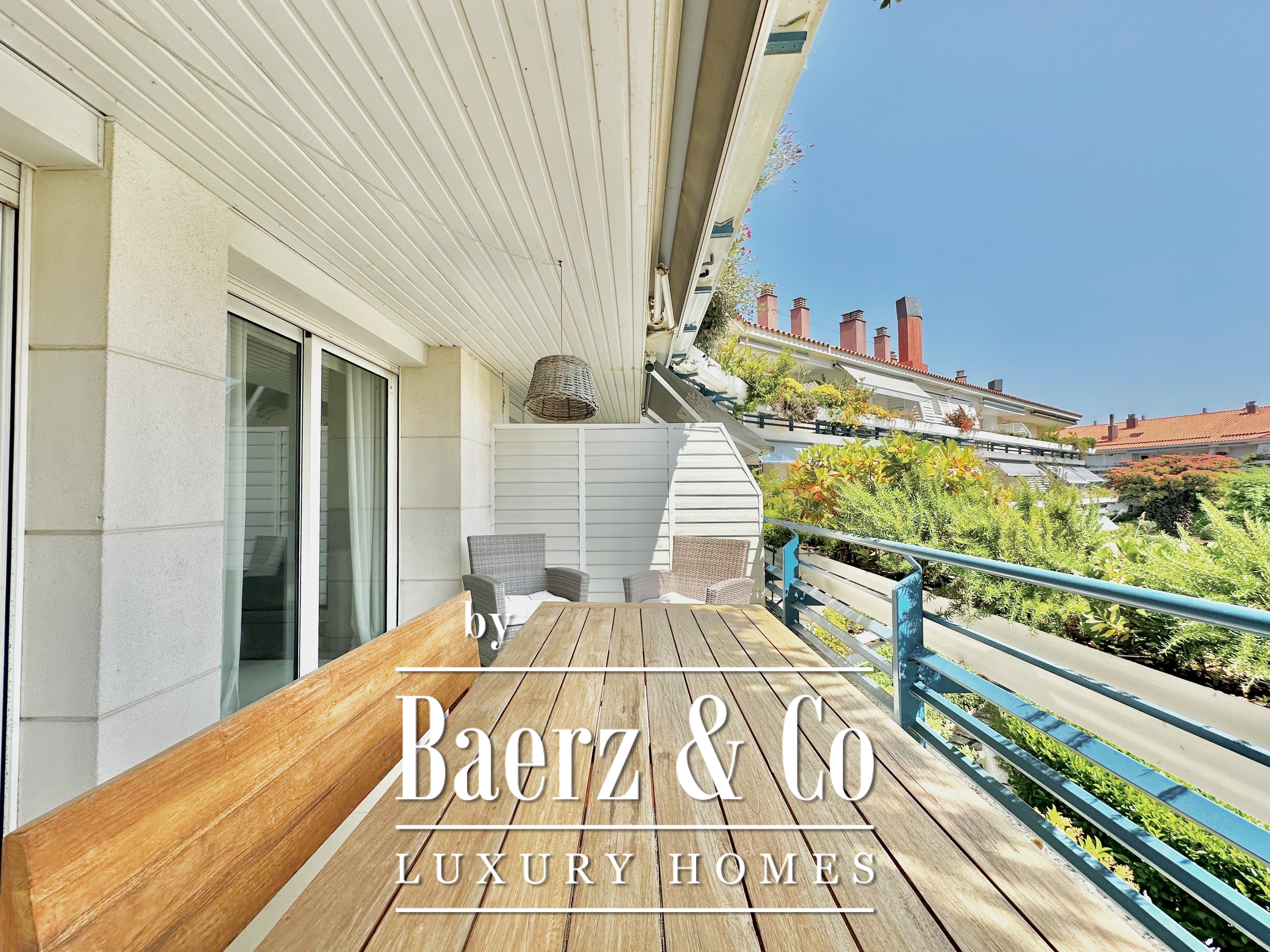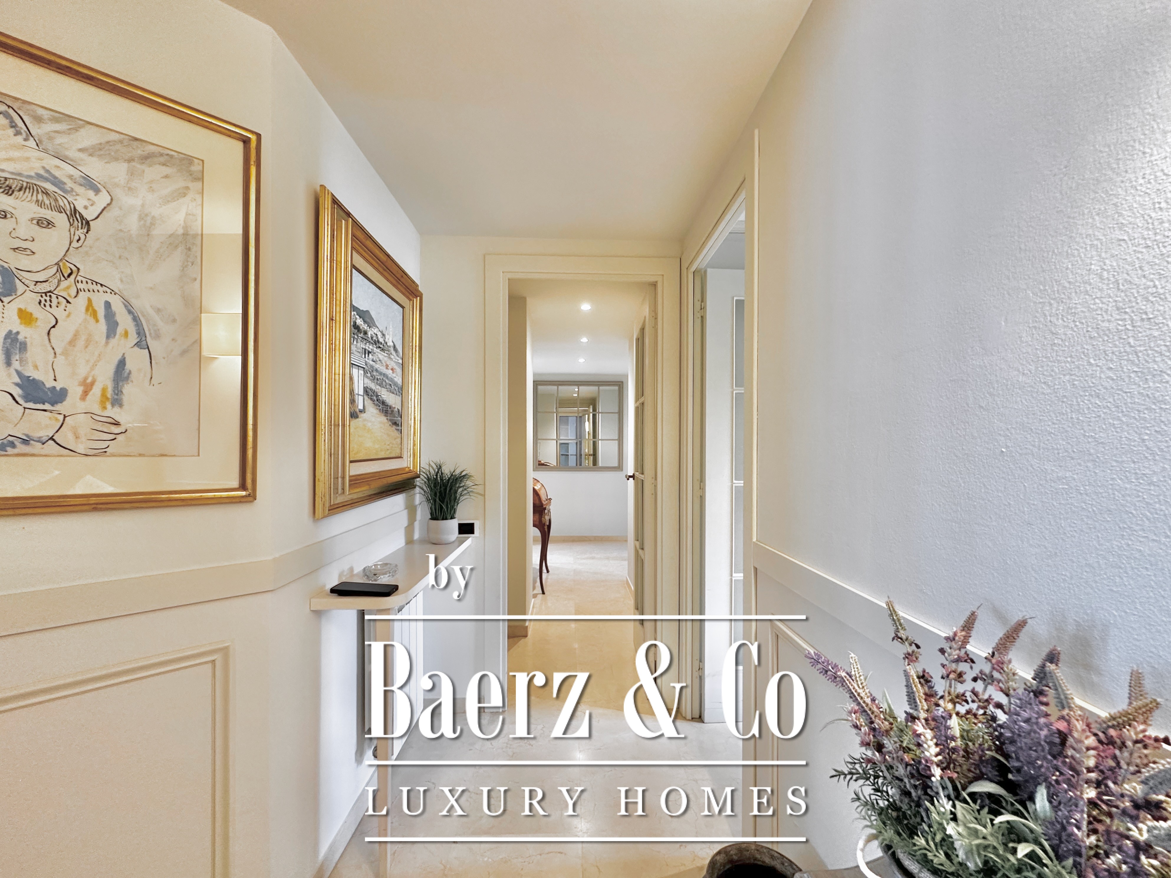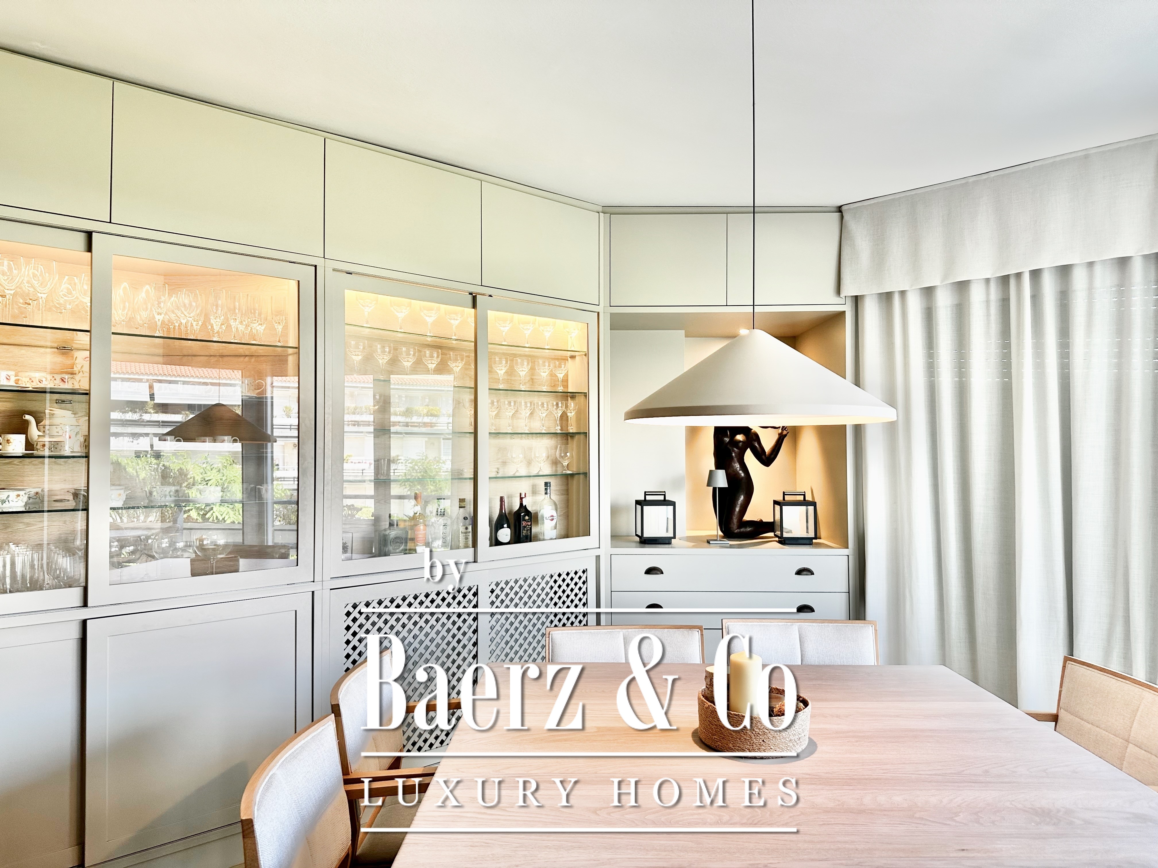 Two expansive terraces, totalling 71 m², trace the apartment’s perimeter, one overlooking the serene communal gardens and the other set directly above the shoreline for unobstructed views. The kitchen and dining space blend functionality and openness, extending onto a terrace framed by greenery. The property has been recently updated and includes two parking spaces and a 14 m² storage unit.