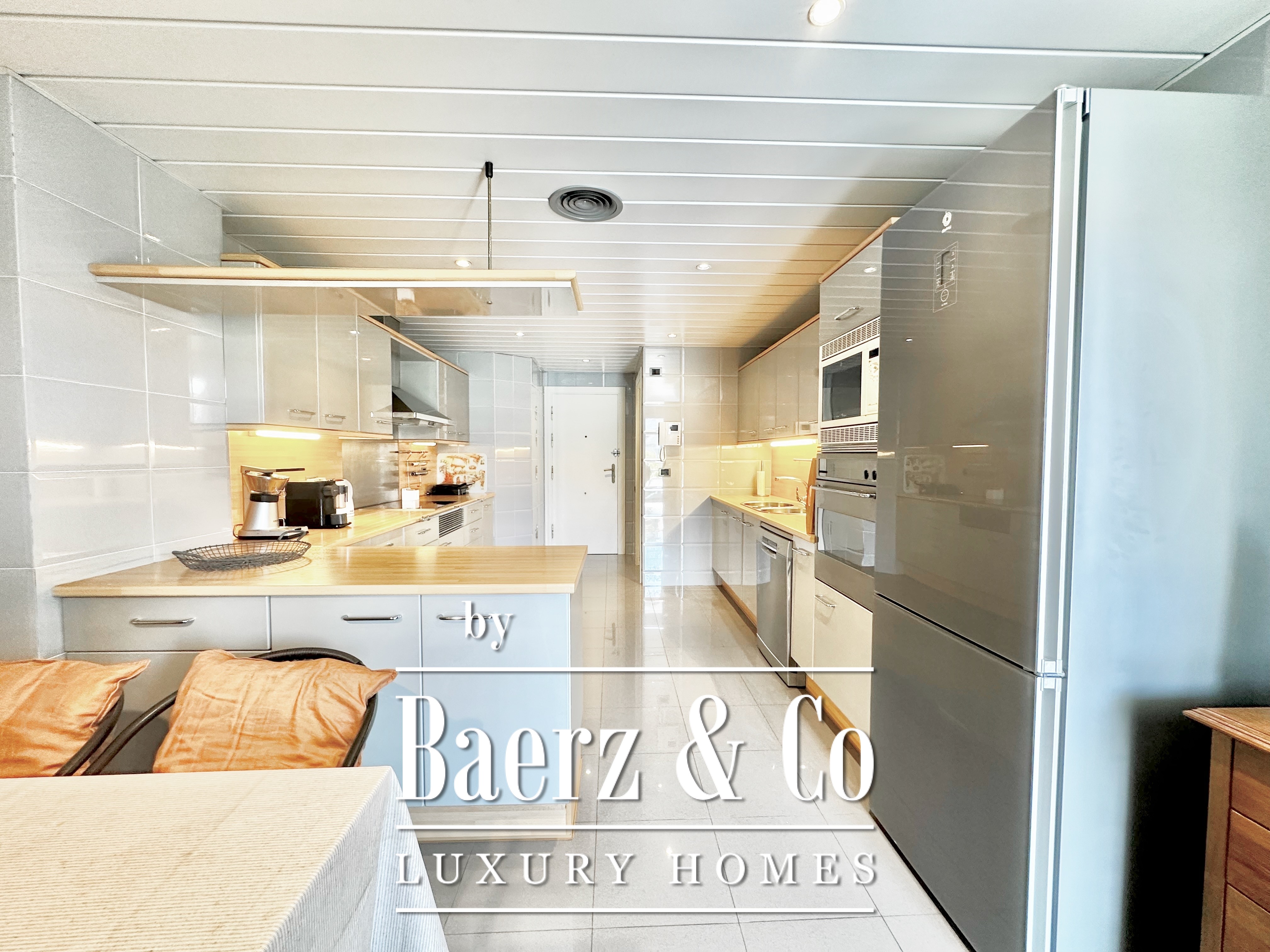 This seafront apartment Sitges stands in the coveted enclave of Terramar, opening directly onto the Mediterranean. Comfort and understated elegance define its 216 m² of carefully considered living space, where every room gives onto the outdoors. Four double bedrooms, each with direct terrace access and ensuite bathrooms, create a spatial rhythm of privacy and connection to the sea. The principal suite invites you to gaze over the water from bed, while the main living area lets light and horizon become part of daily life.