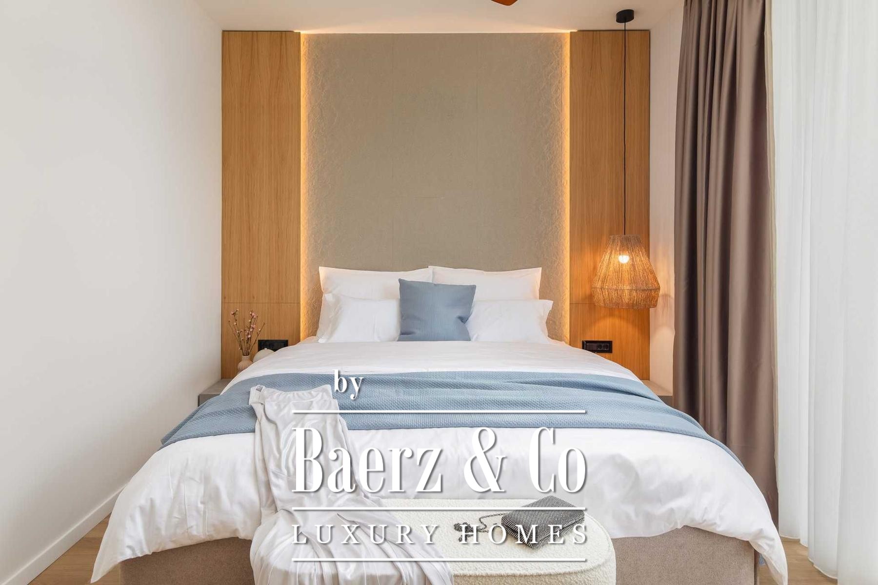 Ascending to the upper floor, four bedrooms each offer en-suite bathrooms, affording personal space and calm. Design details blend seamlessly with high-quality materials, evoking both comfort and clarity. Outdoors, the garden is fully fenced for peace of mind and features a children’s play area, bocce court, and private parking.