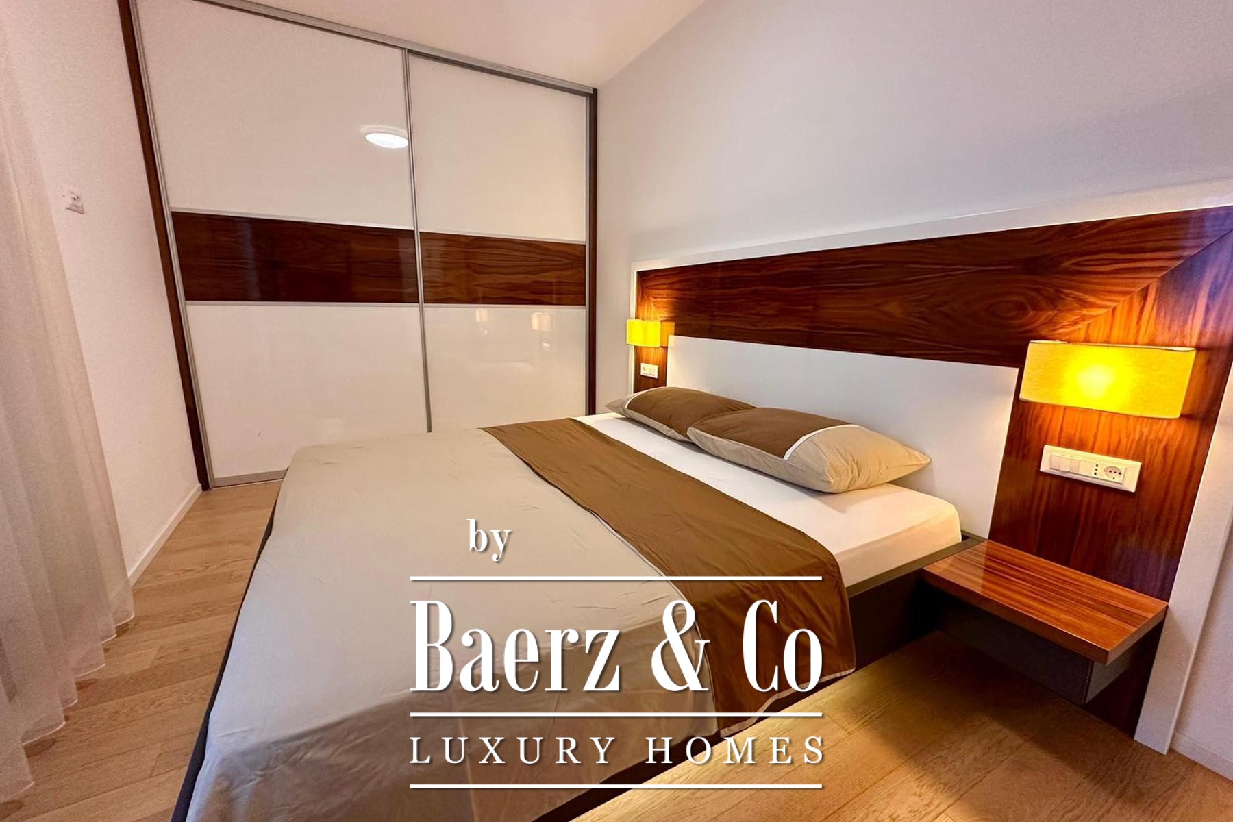 The interior layout harmoniously merges an open plan living room, dining area, and a contemporary kitchen, all finished with high quality materials and furnished for immediate move in. Functionality is elevated by two private terraces, one expansive at 42 m² and another intimate at 8 m², both ideal for quiet moments or social gatherings under the sky.