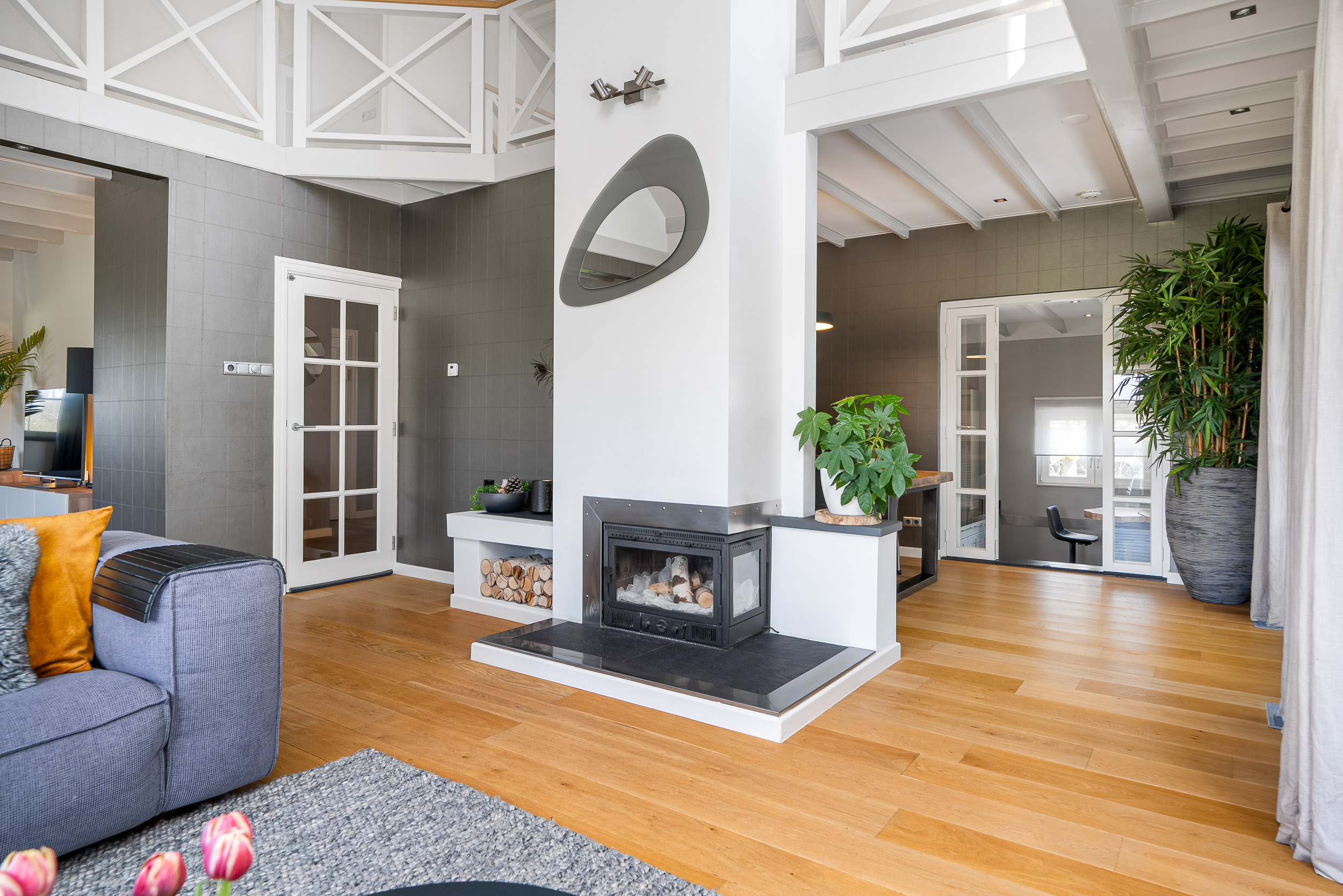In a prime location near the IJsselmeer, adjacent to a marina with direct access to all waterways in Friesland, this villa was completely renovated in 2004 and is situated on a spacious, fenced plot with full privacy and stunning Frisian panoramas. The tranquility, greenery, water, ever-changing skies, and sense of freedom are the defining features of this home. This well-insulated villa of 245m² is designed for lifelong living, featuring a spacious living area, four bedrooms, two bathrooms, a luxurious kitchen with utility room, and a beautiful veranda with scenic views. The double garage with an upper floor offers an abundance of space and possibilities. The fully insulated home office, studio, or guesthouse with breathtaking views of nature serves as a true source of inspiration. The architecturally designed garden, maintained with a robotic lawn mower, is easy to care for and playfully arranged with various fruit trees, hedges, and reed-lined waterways. The stylishly paved driveway and entrance gate highlight the transition to the lush green garden that remains vibrant year-round.