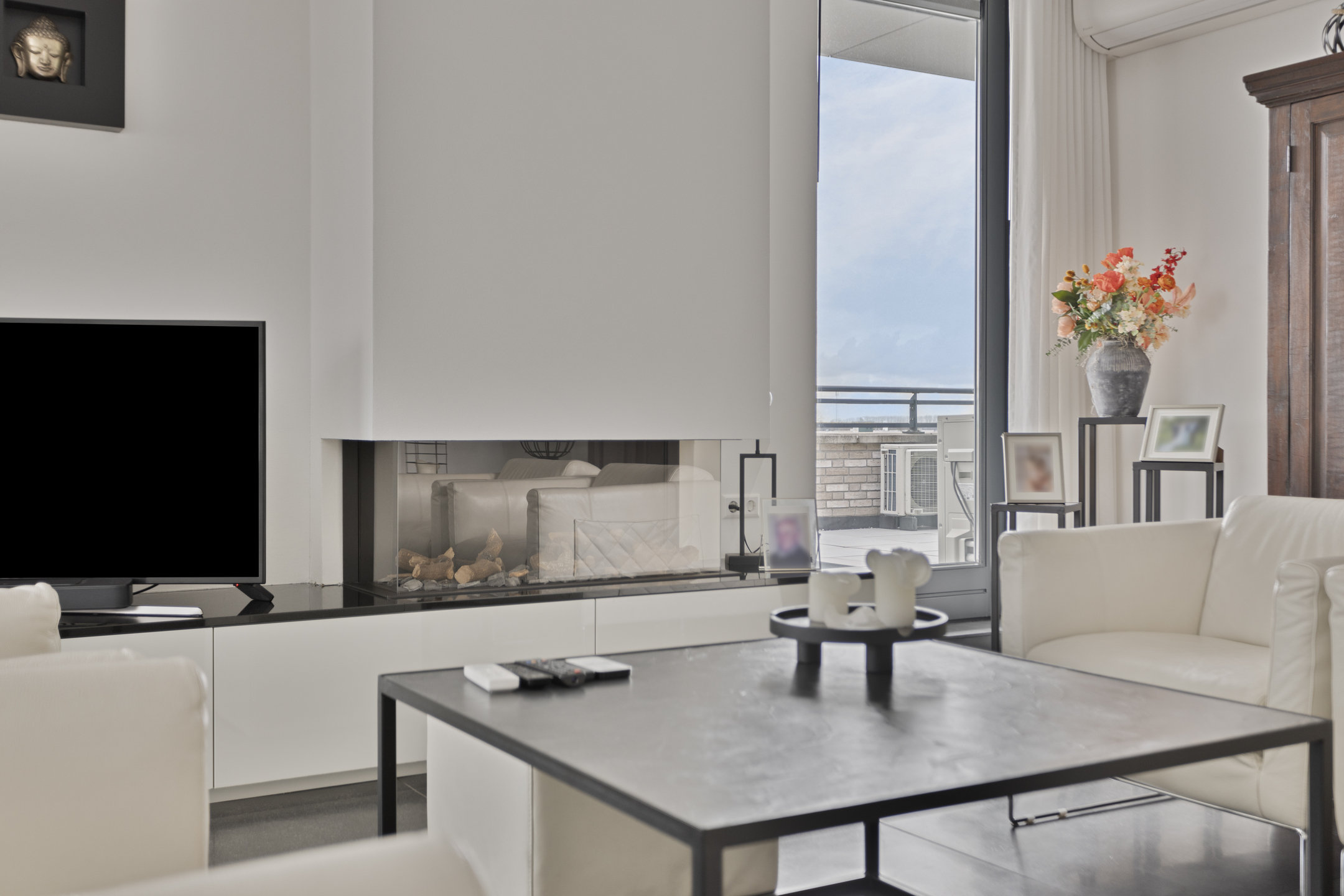 The property features a fine living room with lots of light and direct access to the roof terrace. The kitchen is directly connected to the living room and is a high quality Poggenpohl kitchen with luxury appliances including a high-pressure steam oven, the galvanized hood with direct outdoor extraction, a Quooker and of course a granite worktop.
