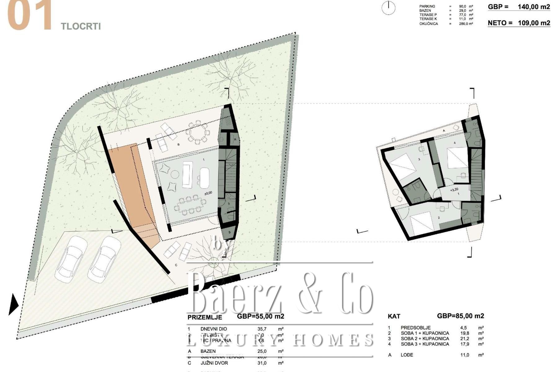 Luxury villa Sutivan captures the essence of serene Mediterranean living, set within an exclusive enclave of 14 new properties just 140 meters from the sea. This contemporary residence offers 140 m² of living area, extending across two carefully composed floors, designed to harmonize interior sophistication with the natural rhythms of coastal Croatia.