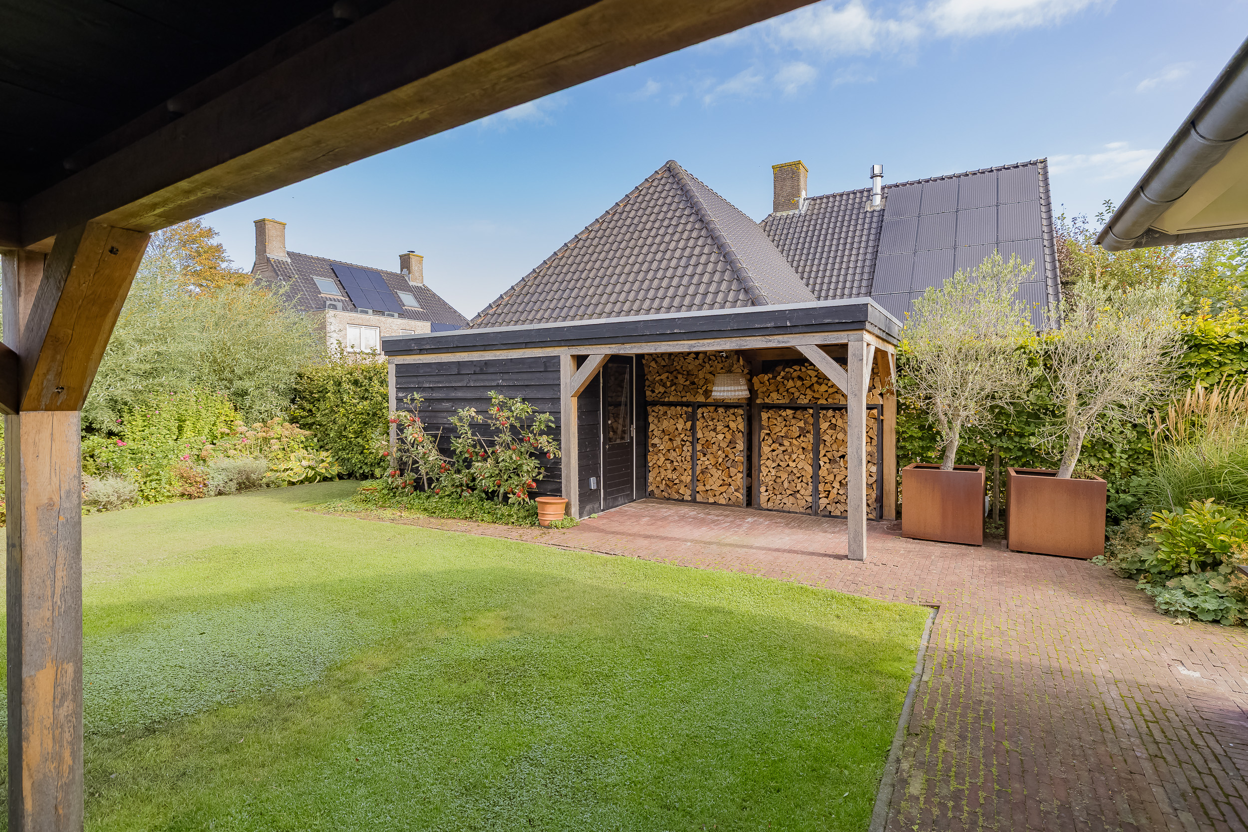 The villa is surrounded by a beautifully landscaped garden with plenty of privacy, a large rose arch, a garden shed with a canopy, and a beautiful oak veranda. Here you can enjoy the outdoors all year round; a beautiful extension of the living room.