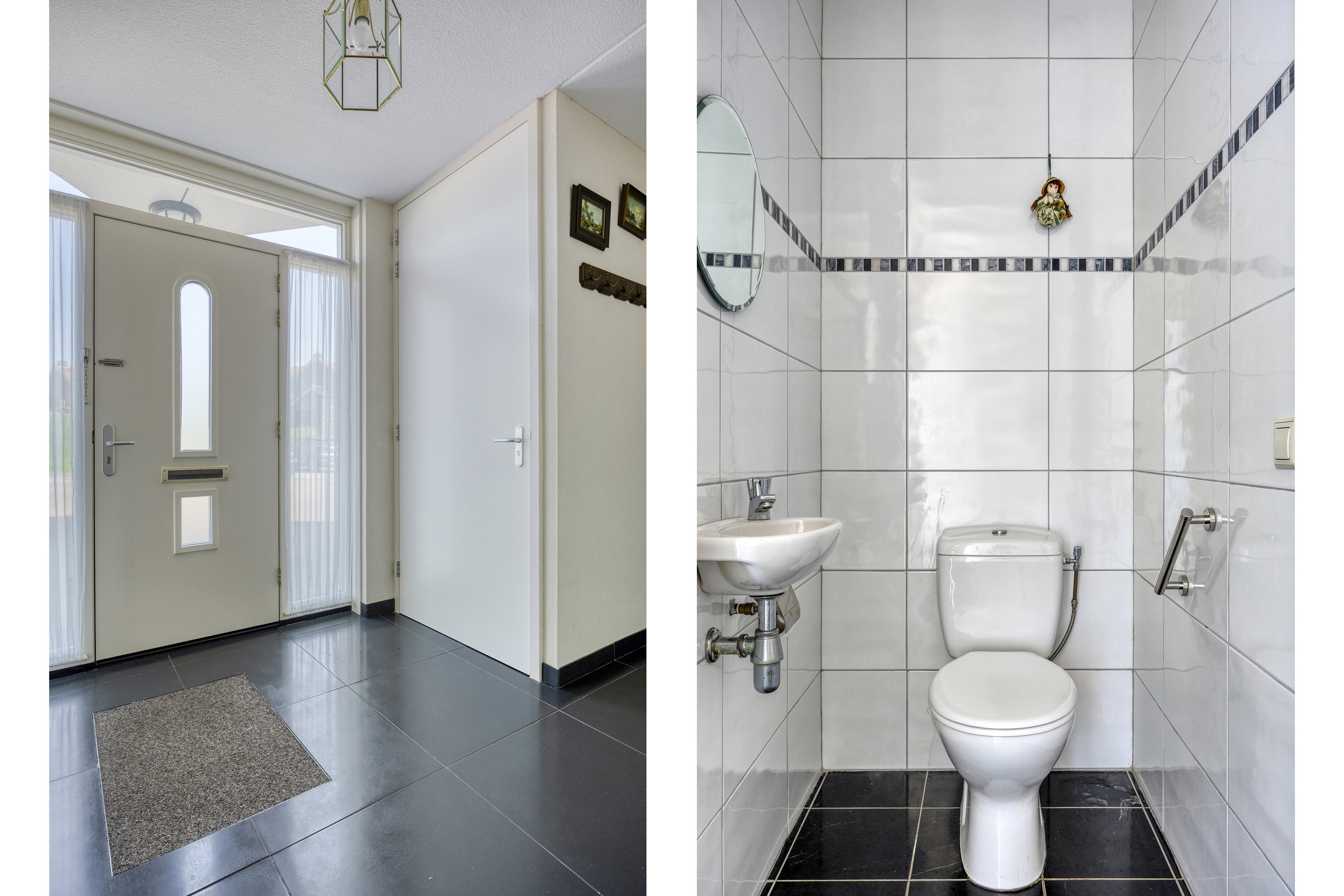 from the tussenhal: with a tiled floor, walls finished with stucco and ceiling with painting, access to: