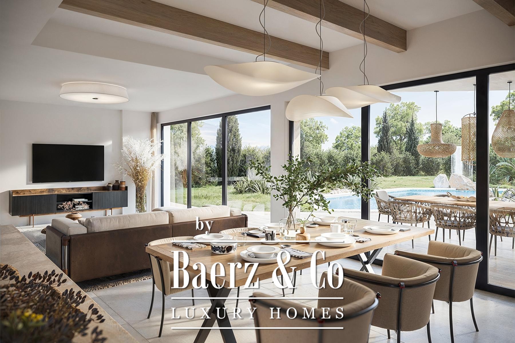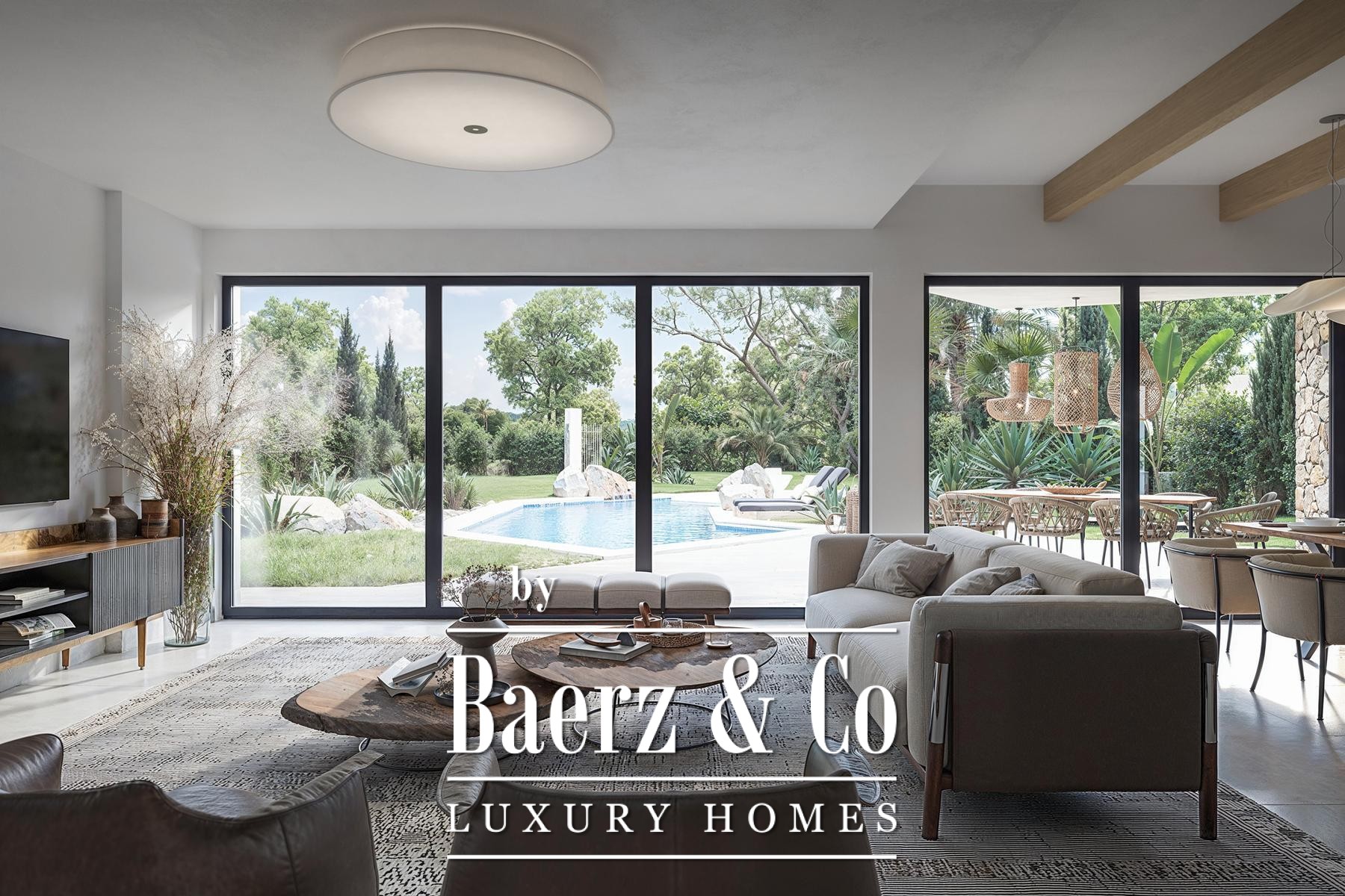 space, living room, dining area, an upstairs terrace, and practical spaces such as a laundry room, utility room, and storage. Underfloor heating throughout the house, air conditioning (ducted system in the living zone), and smart glass touch switches further enhance the comfort level.Special attention has been given to the outdoor area: a heated 60 m² pool finished with mosaic tiles and stone edging, a "dry beach" designed with a sandy shore effect, a 120 m² sports court with a tartan surface suitable for multiple sports, and a summer kitchen with barbecue located poolside.The landscaped garden, with palm trees, low and high greenery, automatic irrigation, and a backdrop of natural oak forest, provides a sense of complete privacy and harmony with nature. There is also a paved parking area for two cars, while a 50-meter-long stone wall ensures privacy and adds a solid and luxurious visual impression.This villa is ideal for family living, luxury vacations, or as an exclusive investment for tourist rental. Construction and equipment are in the final stages, and move-in is possible very soon.Don't miss the opportunity to own this one-of-a-kind property. Contact us for more information, a viewing, and a complete presentation.
