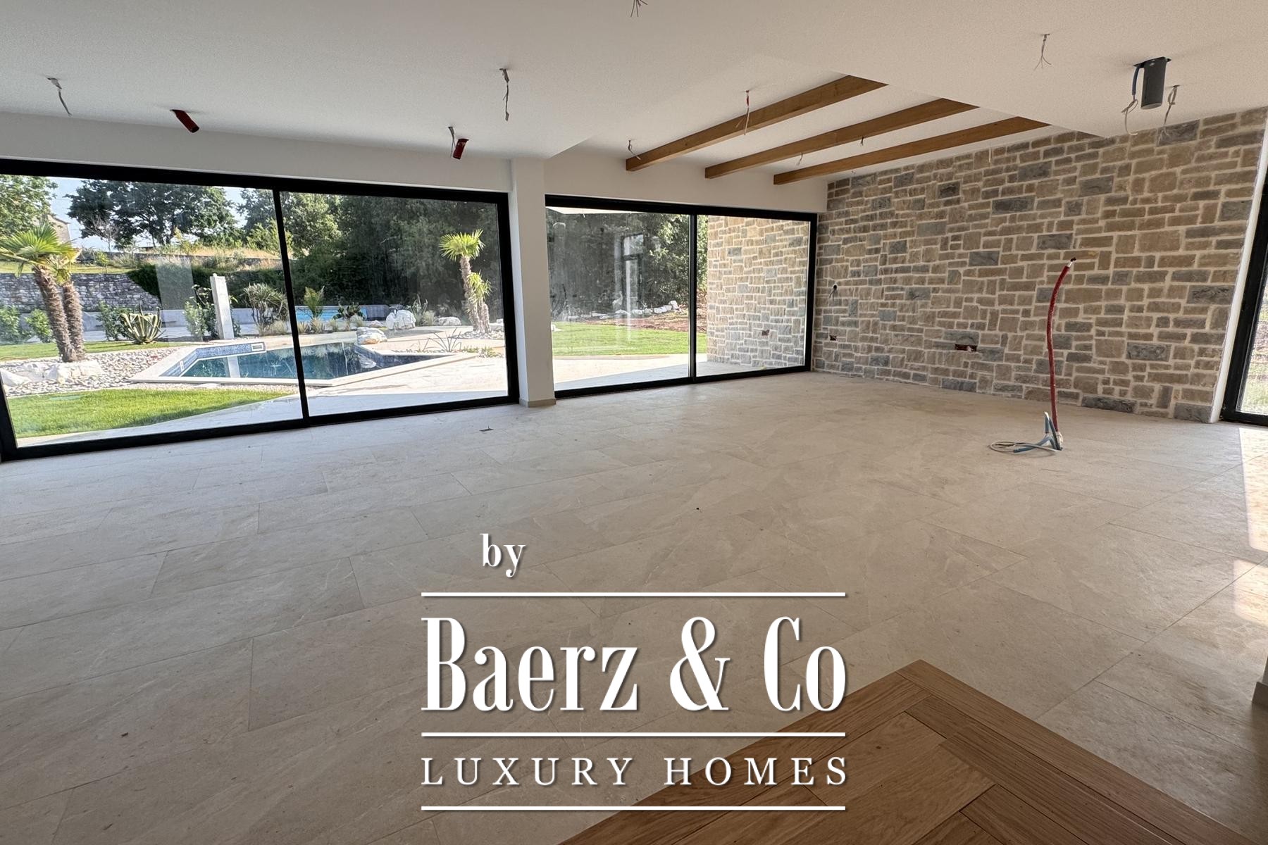 Istria, Tinjan - EXCLUSIVE Villa with Pool and Sports Court on 2935 m2In a peaceful, green landscape just minutes from Tinjan and 20 kilometers from the coast and Poreč, this impressive villa combines contemporary design, top-quality construction, and Istrian charm. This is more than just buying a property - it's a lifestyle investment.Situated on a spacious plot of 2,935 m², which allows for the construction of an additional villa or a semi-detached house (with 30% buildability permitted), the property offers complete privacy, exceptional comfort, and quality living in harmony with nature. The gross area of the house is 253.07 m², while the net area is 220.19 m², smartly laid out so that every square meter has its function and purpose.The house is built with reinforced concrete and features double thermal insulation (a total of 14 cm), which is rare and ensures excellent energy efficiency. Large aluminum sliding doors with triple glazing and thin frames provide open views and plenty of natural light, while the interior exudes comfort, elegance, and balance.The villa includes four spacious bedrooms, each with its own modern bathroom, an additional guest toilet on the ground floor, a large open kitchen with island