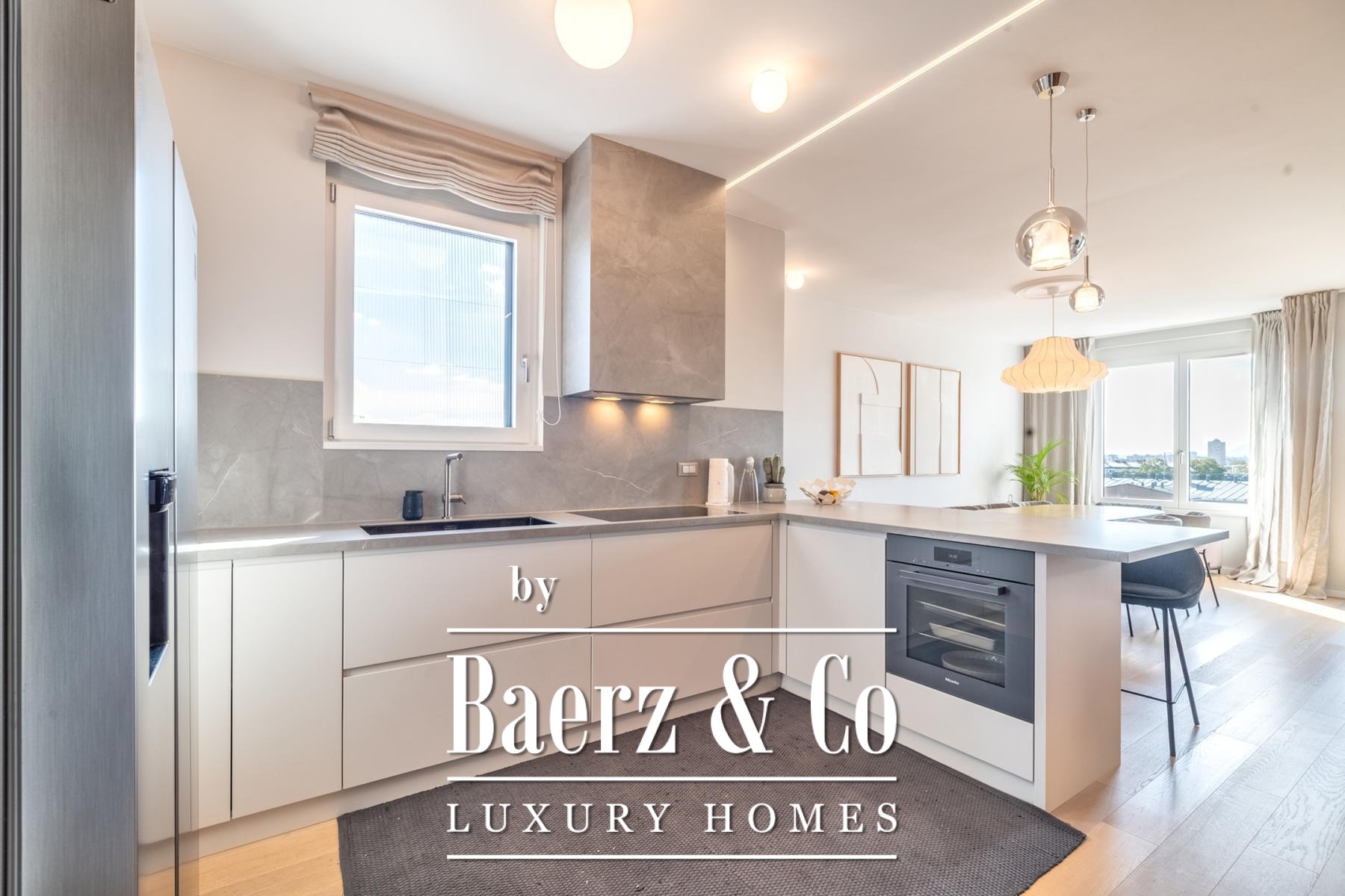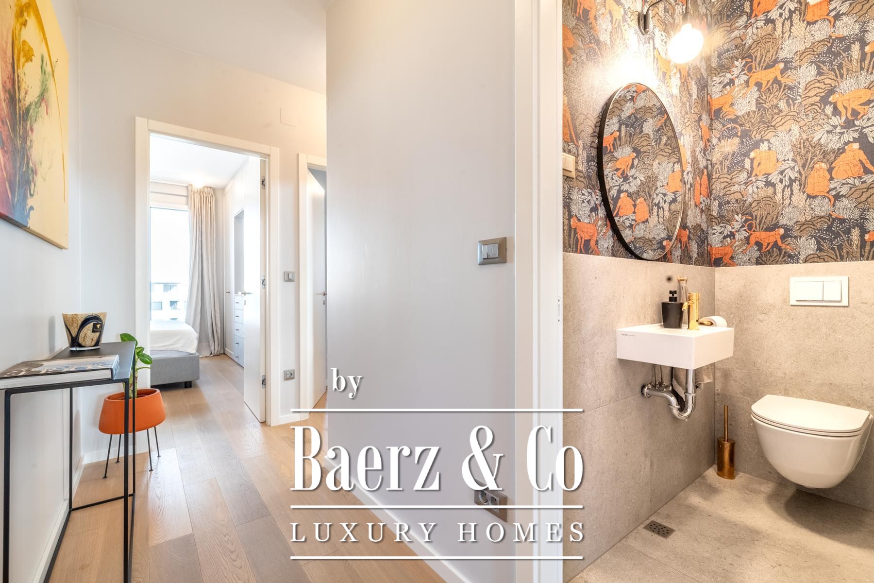 This penthouse apartment Trešnjevka - Sjever is set on the recessed floor of a modern residential and commercial building, offering 116 m² of meticulously planned space in a peaceful Zagreb street. Designed under the guidance of an interior designer, the apartment embodies contemporary luxury and warmth, expressed through custom-built features and enduring materials.