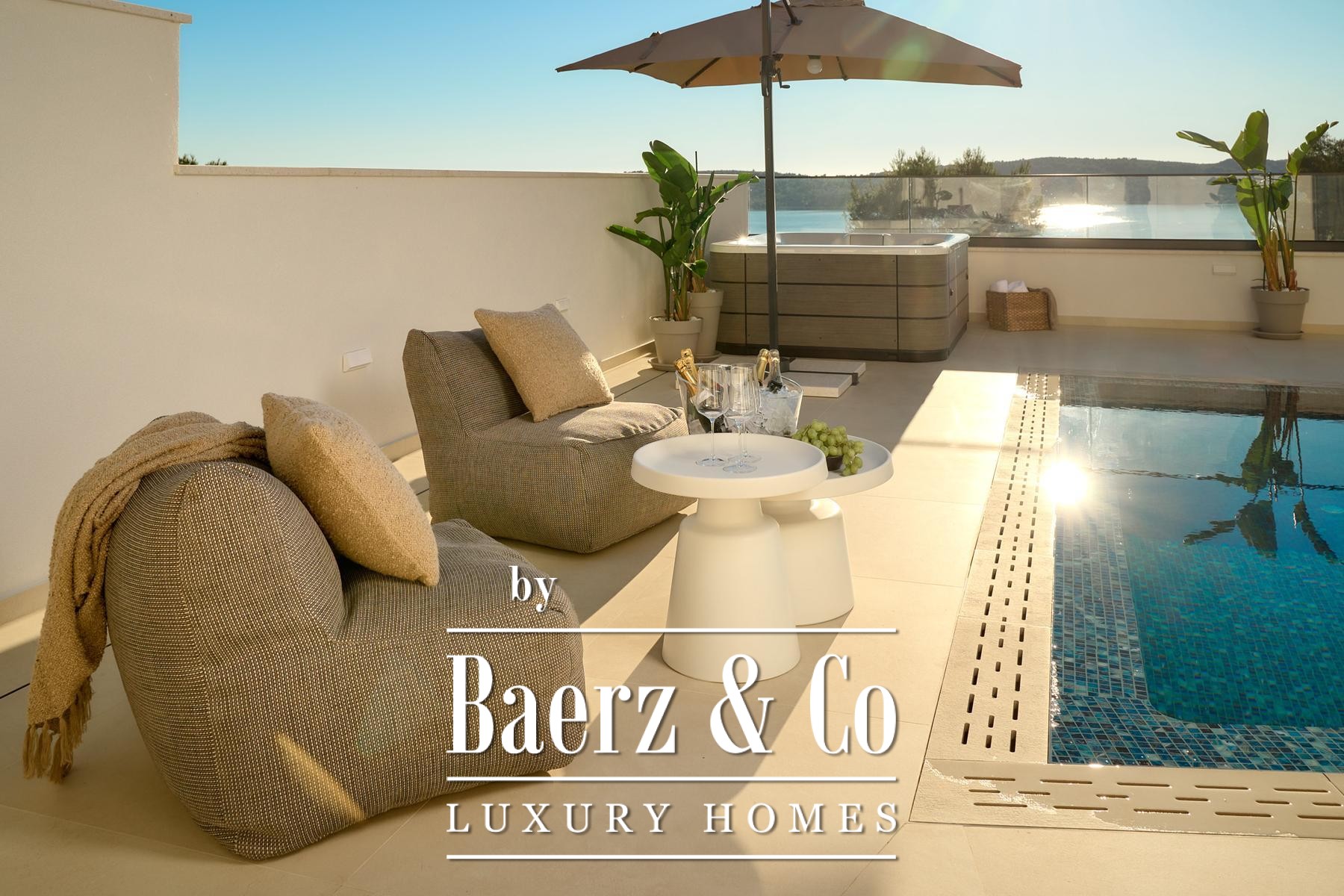 Positioned moments from the sea, just 330 metres from the beach, 500 metres to shops, and within easy reach of Trogir, Split Airport, and the city of Split, this modern villa for sale in Trogir epitomizes understated luxury for those seeking a refined family residence or a strategic investment.