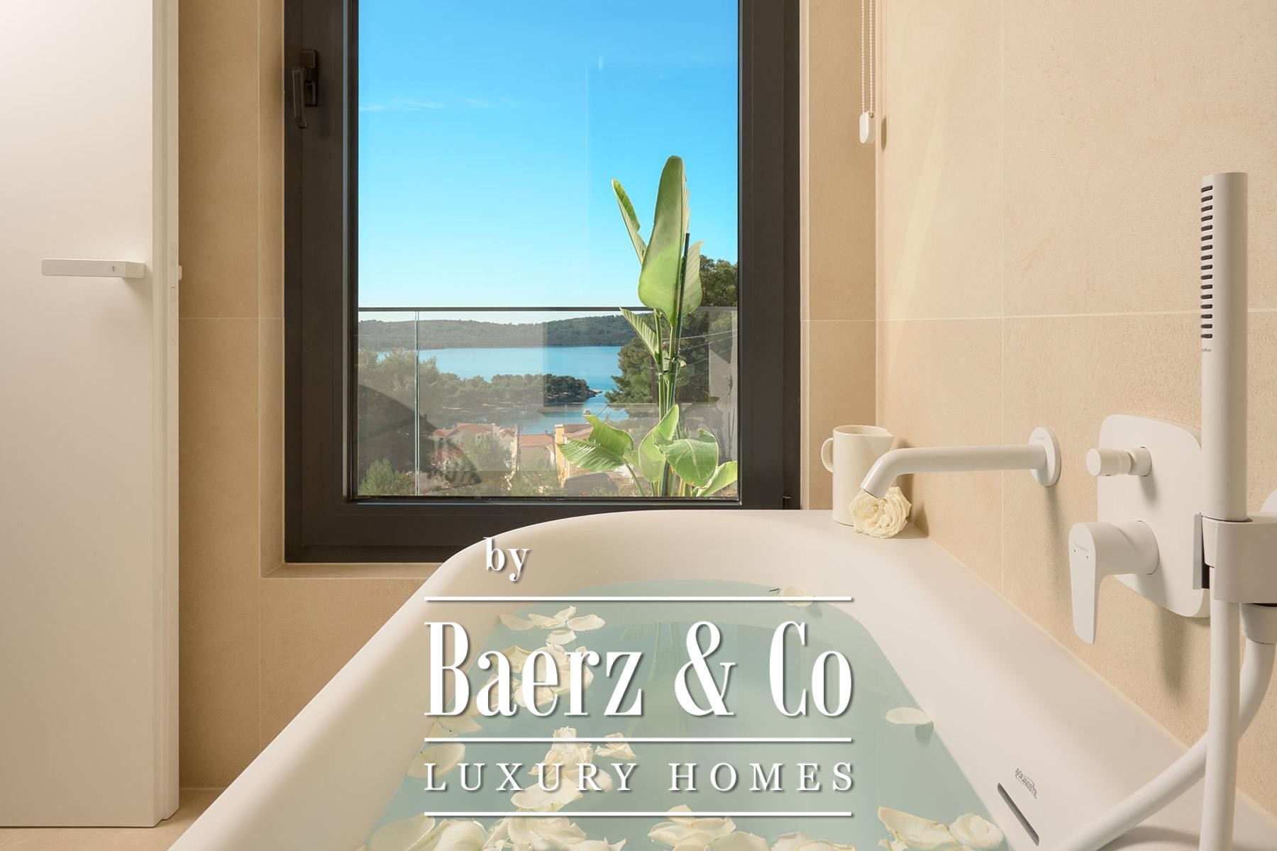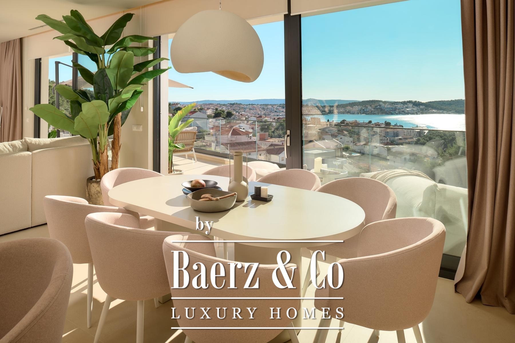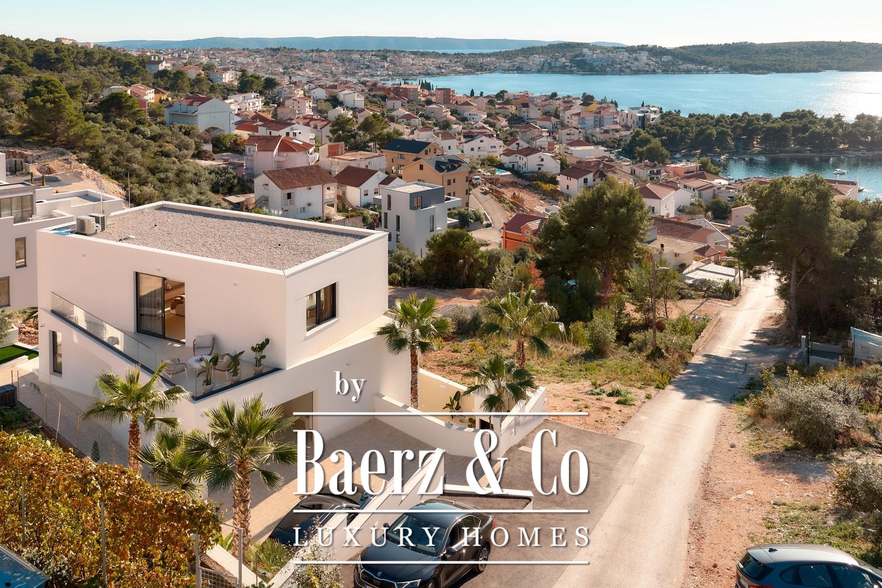 Modern villa Trogir presents an elevated interpretation of Mediterranean living in Croatia, where panoramic sea views and contemporary architecture are realised with discreet precision. Set on a plot of 560 m², this 351 m² residence unfolds across three levels, each designed to balance comfort and innovation. The villa commands an unobstructed outlook over the Adriatic, blending serene privacy with a cosmopolitan rhythm.