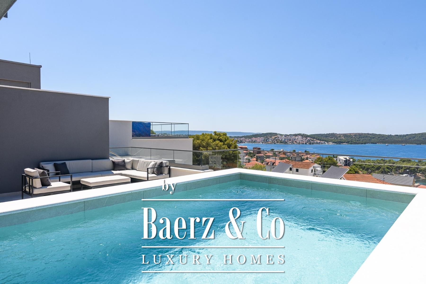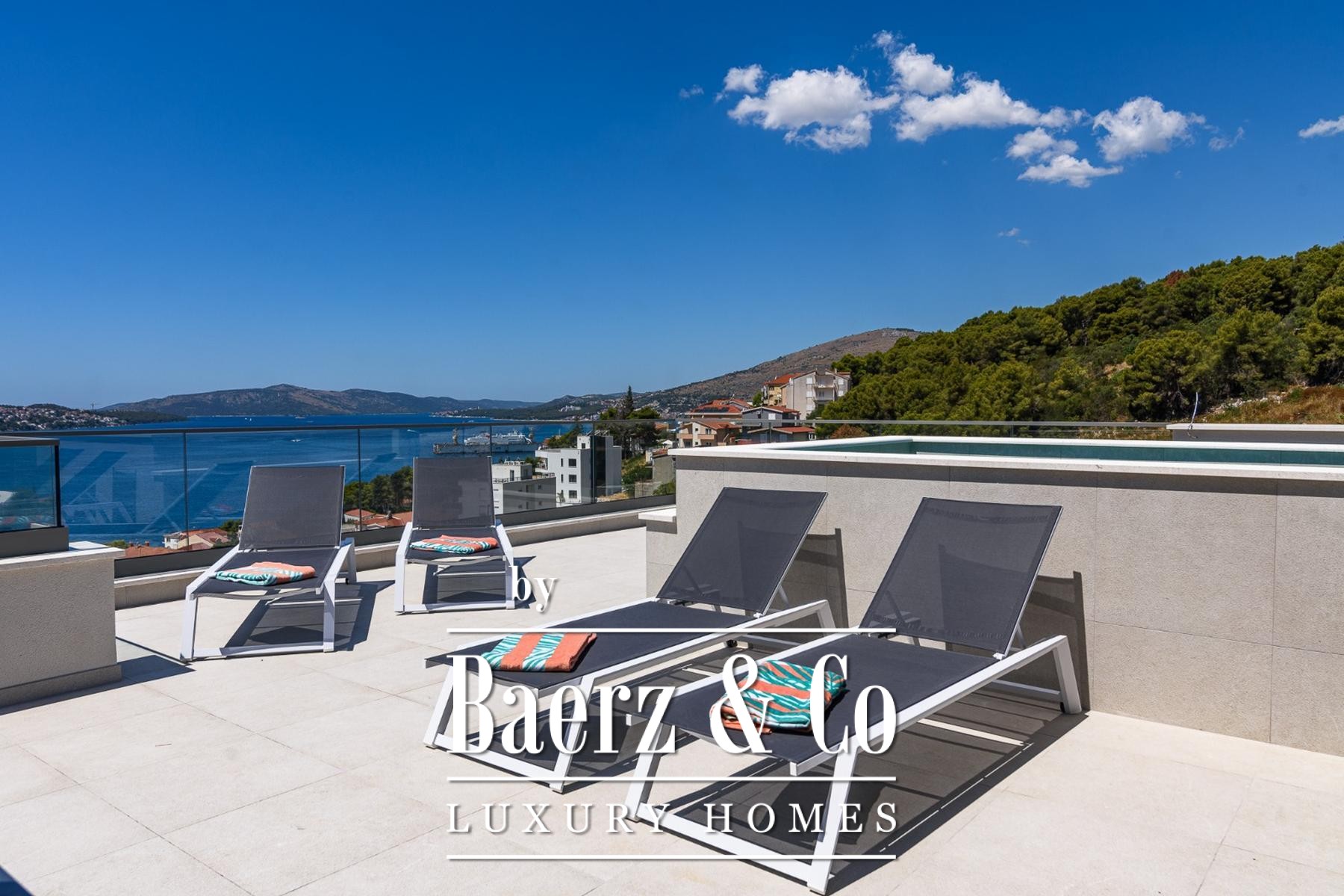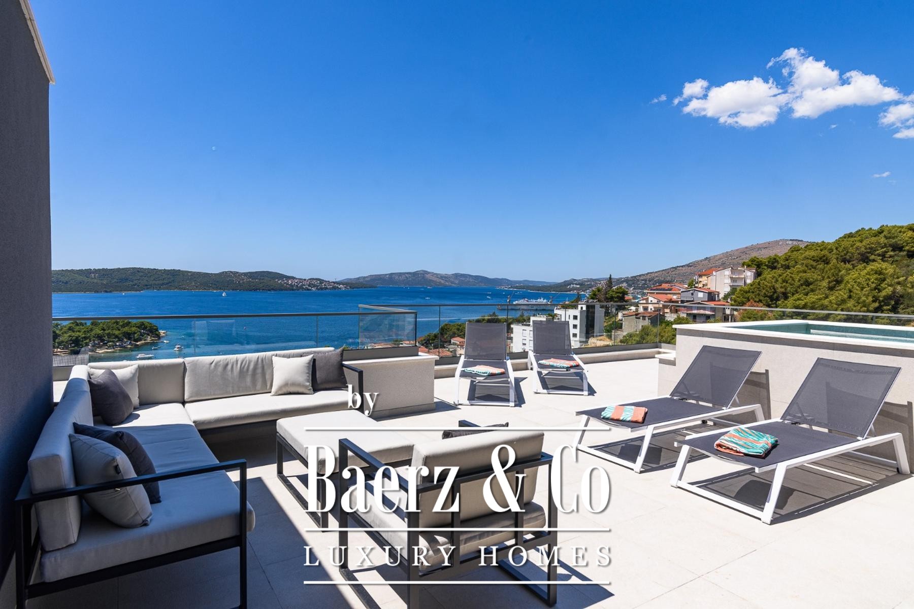 Luxury apartment Trogir commands an exceptional setting, with 132 m² of refined living space distributed across two thoughtfully designed levels. This residence offers panoramic sea views that frame every moment, with interiors shaped by top-quality materials and bespoke furnishings. The apartment features four bedrooms and four bathrooms, optimized for both privacy and gathering, with a generous open area uniting kitchen, dining, and living functions as the social heart.