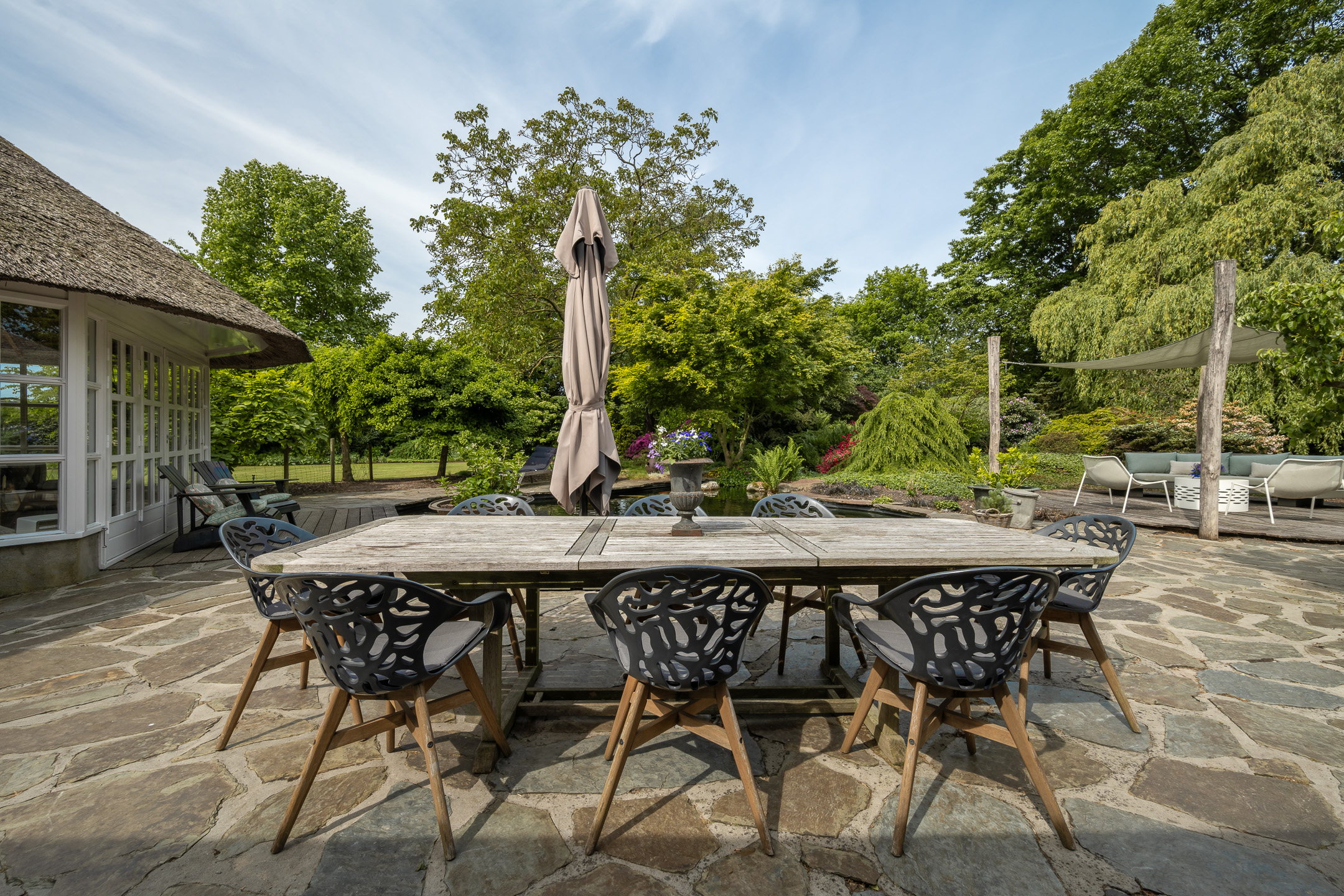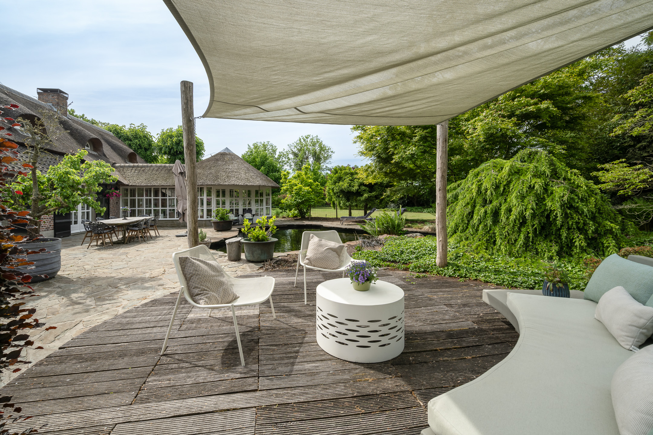 Set on approximately 1 hectare of land, the estate offers a park-like garden with mature trees, a pond, and multiple terraces. For equestrian enthusiasts, there are stables, a fully fenced paddock, and direct riding access to the Bedafse Bergen trails. Additional features include a fruit orchard, vegetable garden, natural pasture pond, animal shelter, an authentic water well, and even a converted baker’s cottage serving as a charming chicken coop.