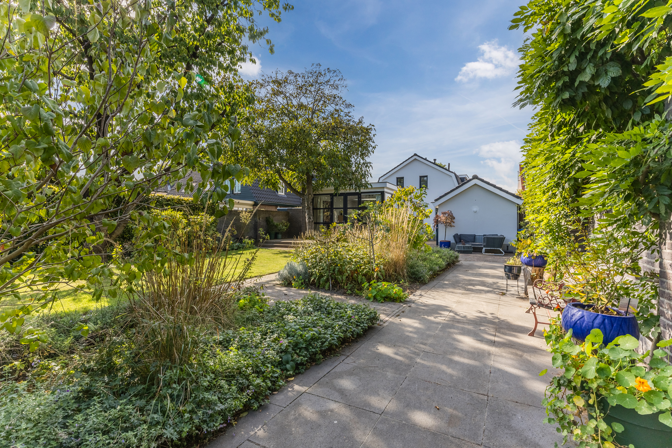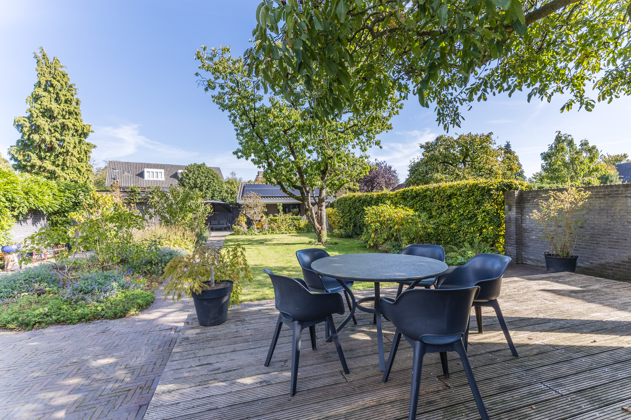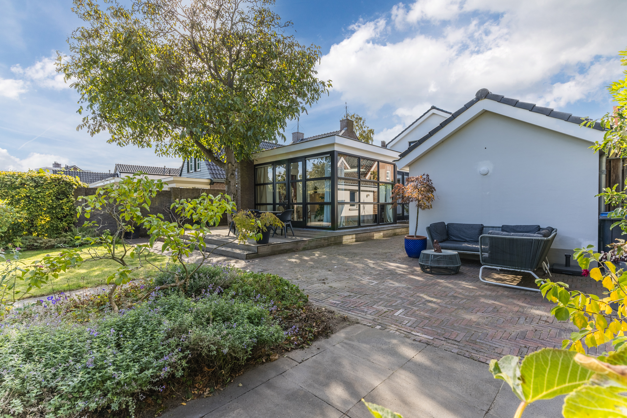 Detached house Uden offers an elegant synthesis of 1930s character with the comfort and sustainability essential for modern living. Rebuilt under architectural supervision in 2003, the home maintains a quiet authority thanks to its classic proportions, enhanced by high-quality insulation, HR++ glazing, solar panels, and a hybrid heat pump. Its living area of 160 m² sits within a 702 m² plot, promising both interior space and privacy outdoors.