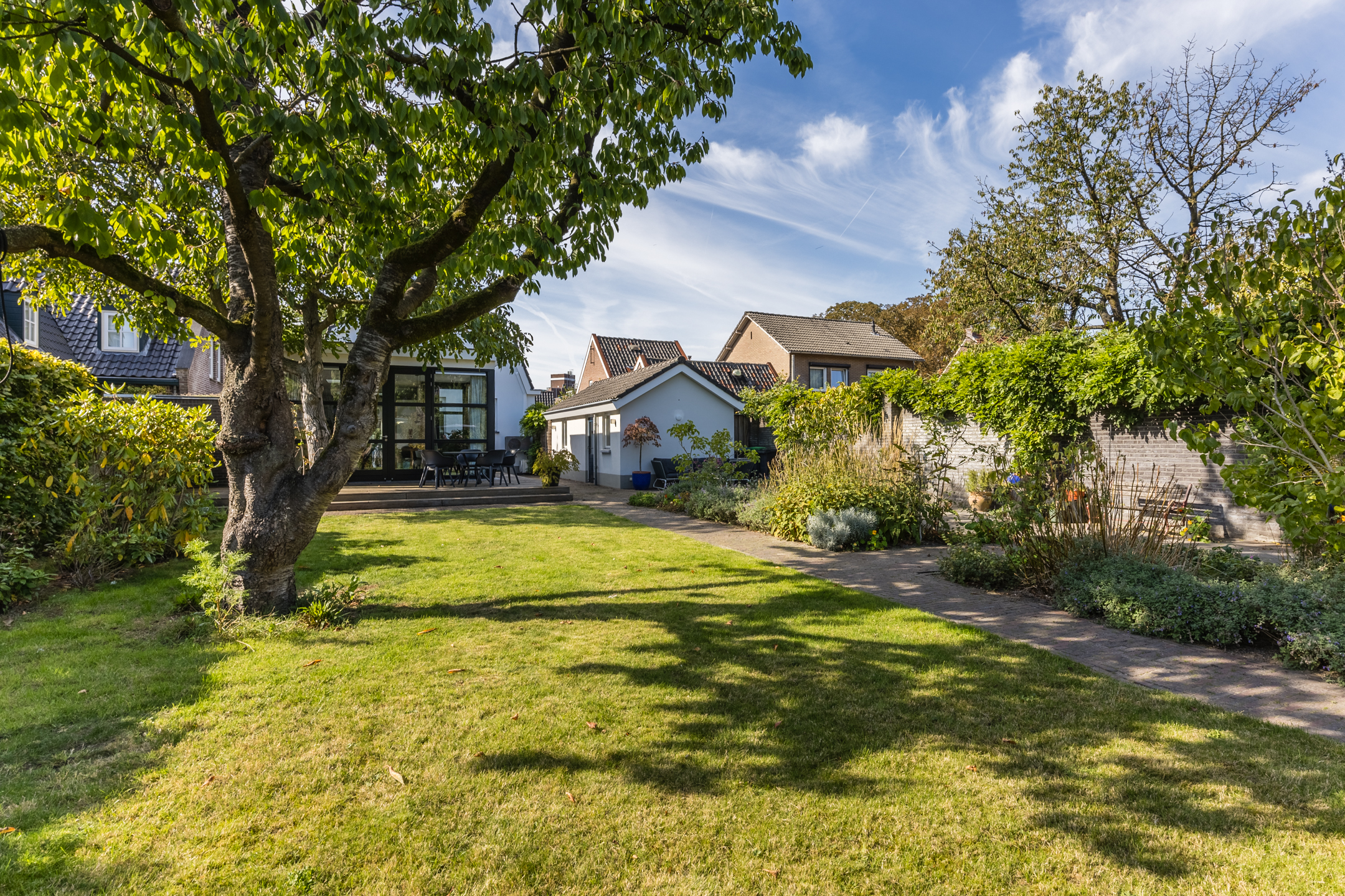 Beyond the main house, the private landscaped garden is complemented by an insulated outbuilding with its own bathroom and heating, ideal for use as a home office, guest suite, or studio. A garage and large driveway add practical convenience. The house is quietly set within Uden’s older neighborhood, offering tree-lined calm yet direct access to the center’s amenities. Connectivity is assured by proximity to the A50 motorway, with Eindhoven, Den Bosch, and Nijmegen within easy reach. The Maashorst and Lieverlingsbos nature reserves are nearby, inviting outdoor pursuits.