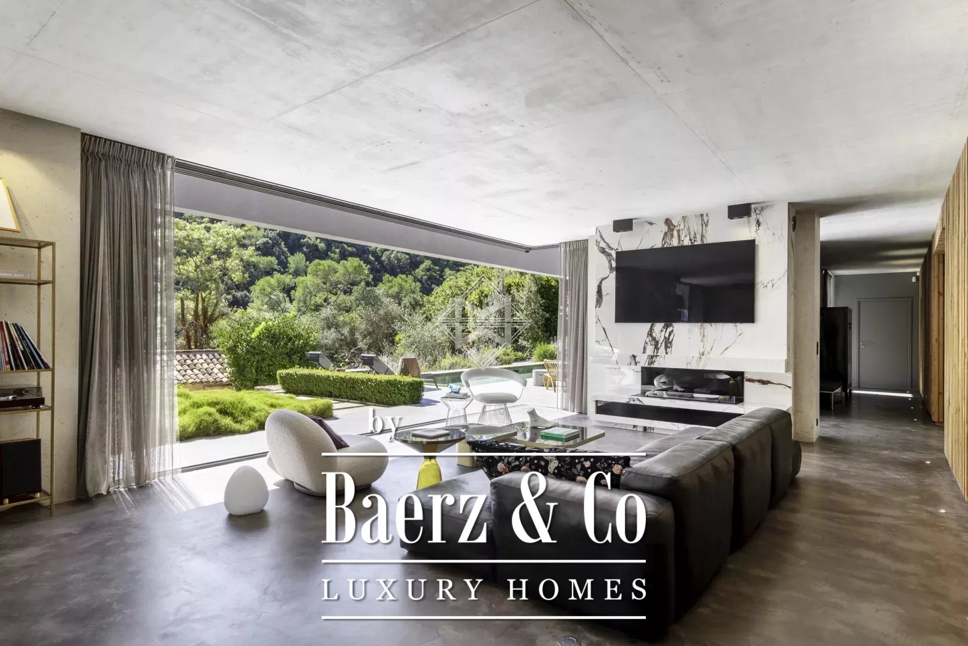 Villa Valbonne offers a considered balance of modern architecture and organic landscape on the edge of this historic French village. The 240 m² contemporary residence, set within 4,798 m² of thoughtfully landscaped grounds inspired by the English Garden ideal, delivers an atmosphere of refined privacy and authentic tranquility.