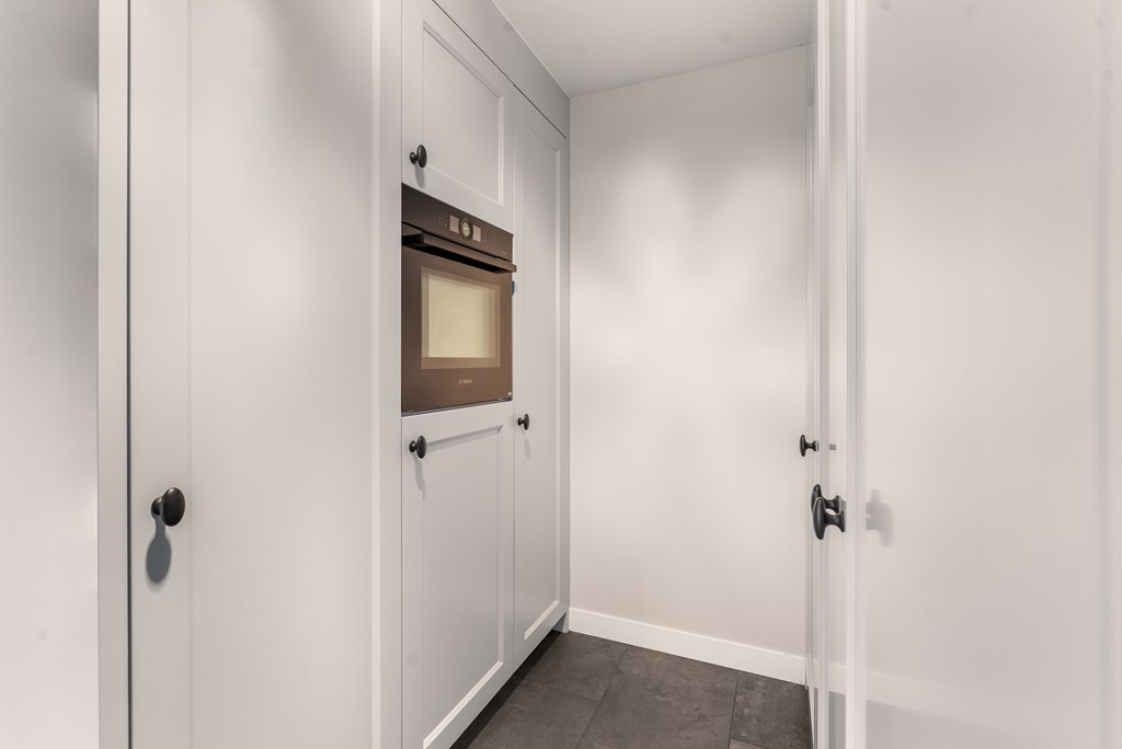 De in 2021 vernieuwde keuken is voorzien van een inductie kookplaat, oven, magnetron, vaatwasser, koelkast en een Quooker. Vanuit de keuken bereikt u de bijkeuken met praktische wandkasten, de cv-combiketel (Nefit uit 2021) en de meterkast.