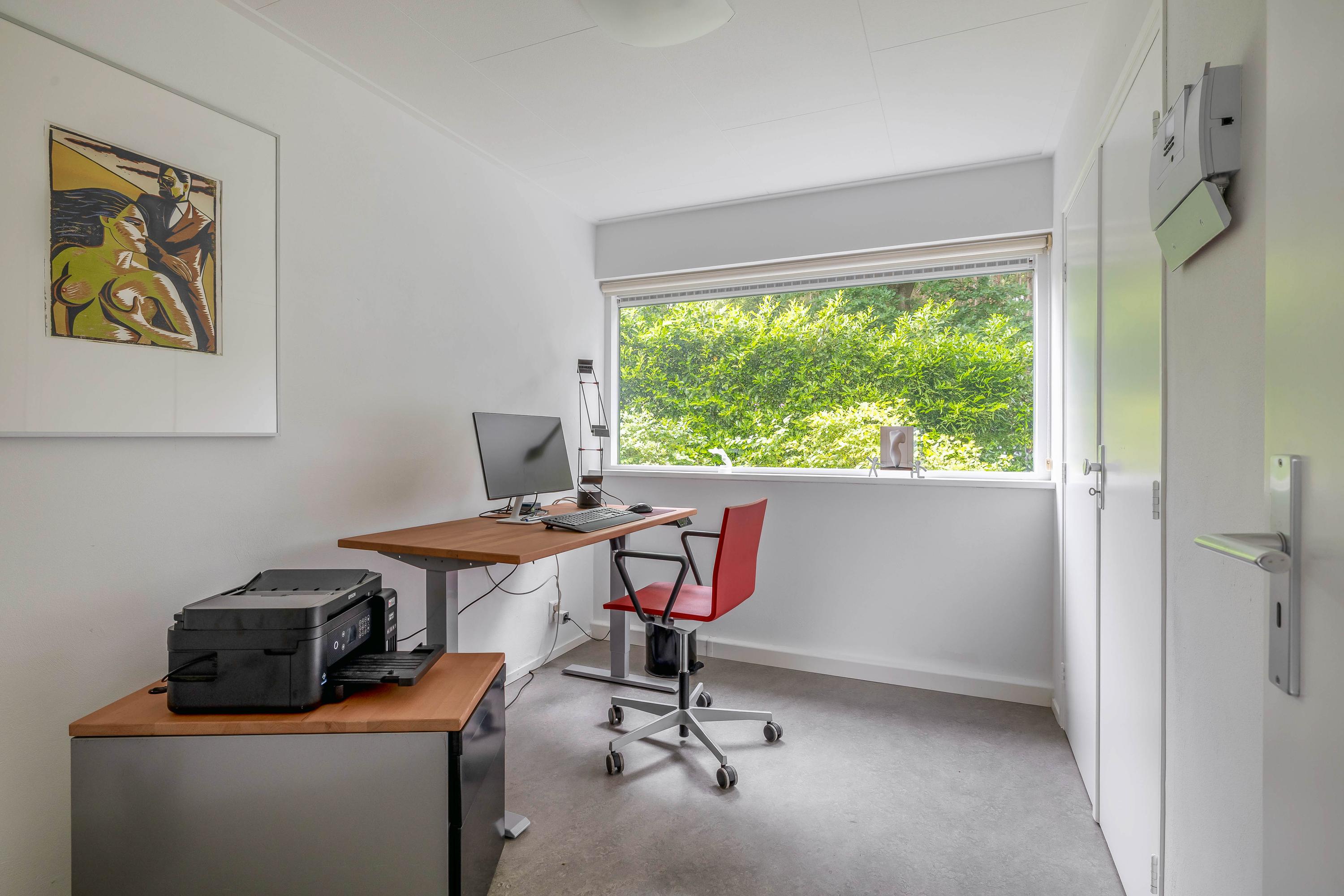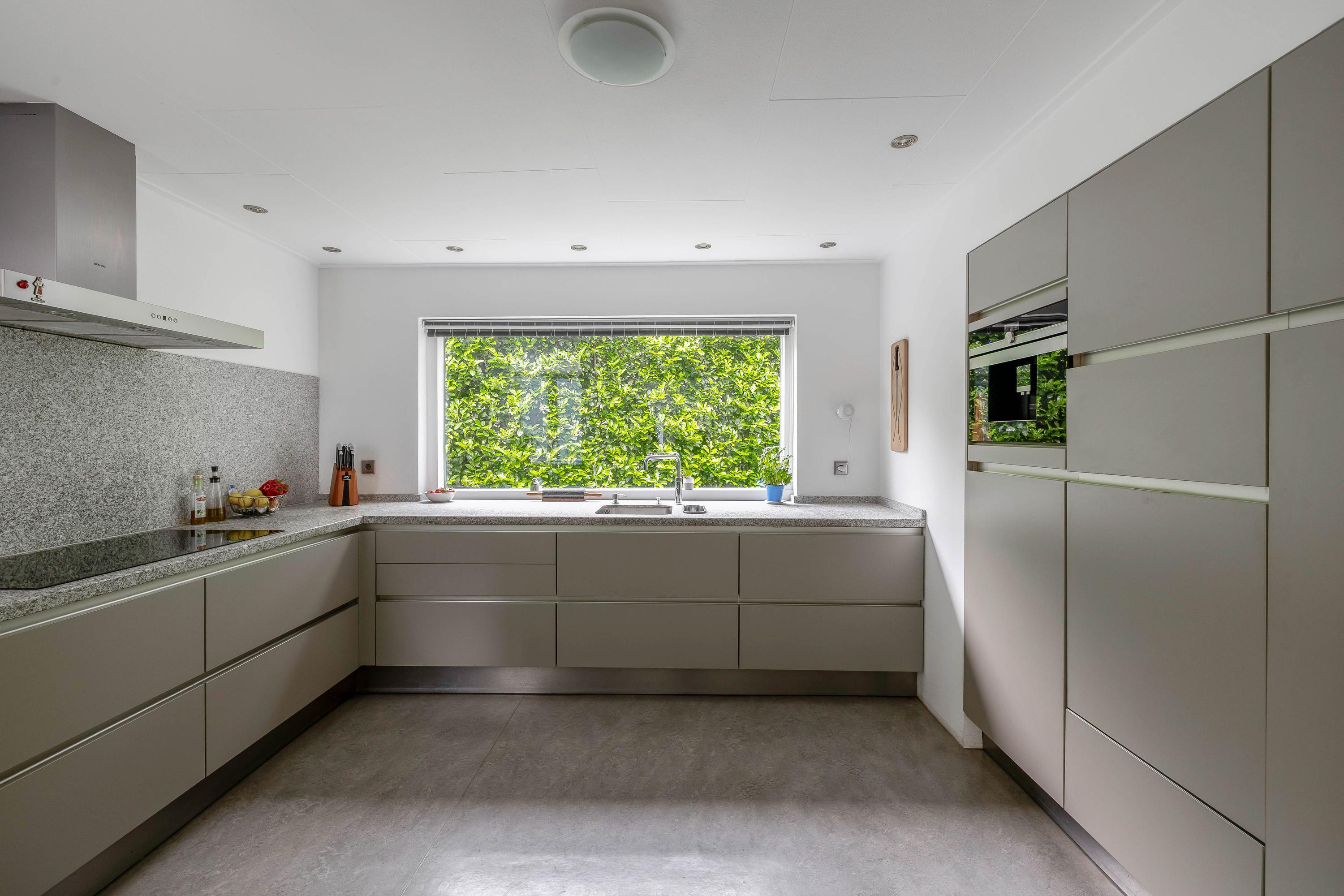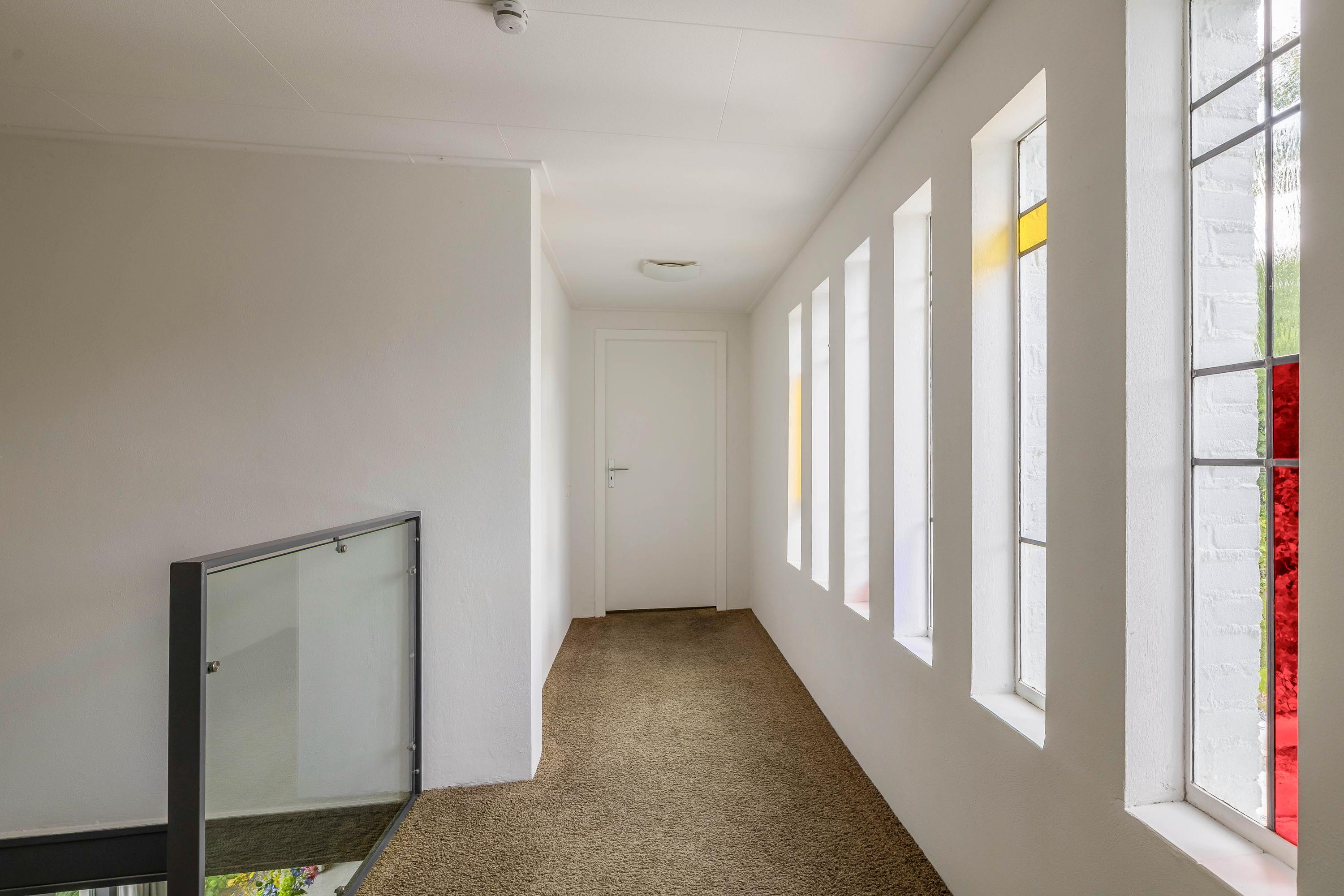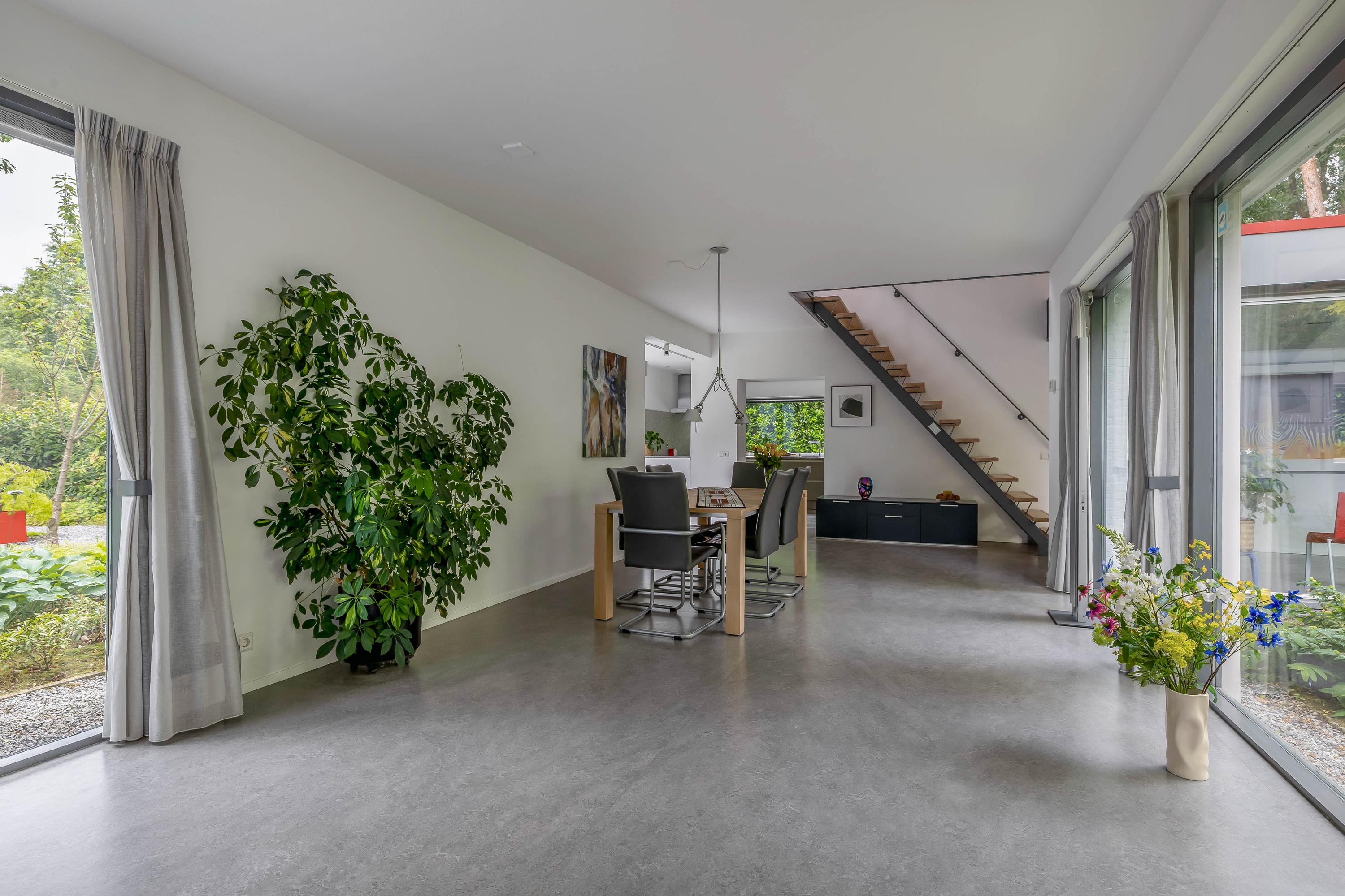 Sellers on their forest villa in Vessem: “We fell in love with the architecture”. After twenty years, the sellers are saying goodbye to their special place on the outskirts of Vessem. “At the time, we fell in love with the shape and the light, among other things”. When the seller visited the house with his then wife in the early 2000s, it was love at first sight. 'The unique architecture appealed to us immediately,' he says. 'The abundance of light and the sightlines made it feel like home right away. Later, the seller discovered that the villa was designed according to the so-called plastic number. This is a theory of proportions in which spaces and lines reinforce each other according to fixed measurements. These principles are also applied within the Bossche School, a post-war architectural movement. ‘Someone came to visit and immediately said: this is one of those houses. I had never heard of it before. But when I looked into it, it made perfect sense.’ He also finds the fifteen stained-glass windows in the style of the famous Dutch artist Piet Mondriaan remarkable. ‘I had them designed. They fit beautifully with the architecture.’