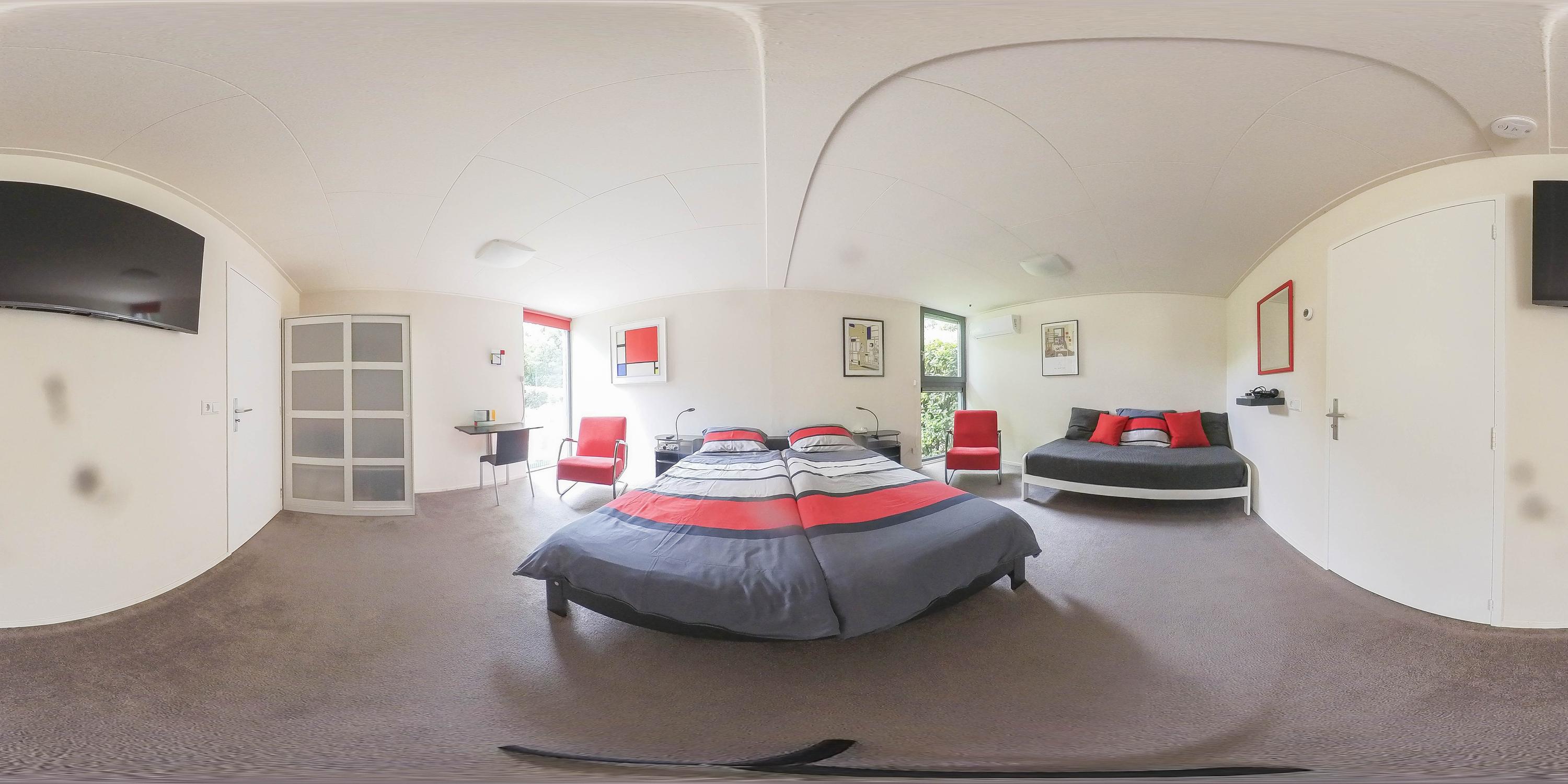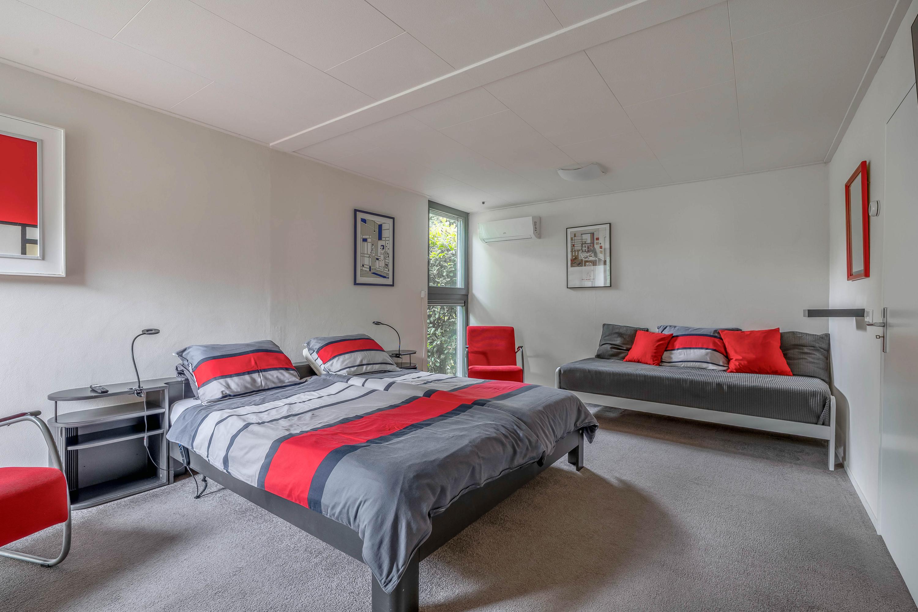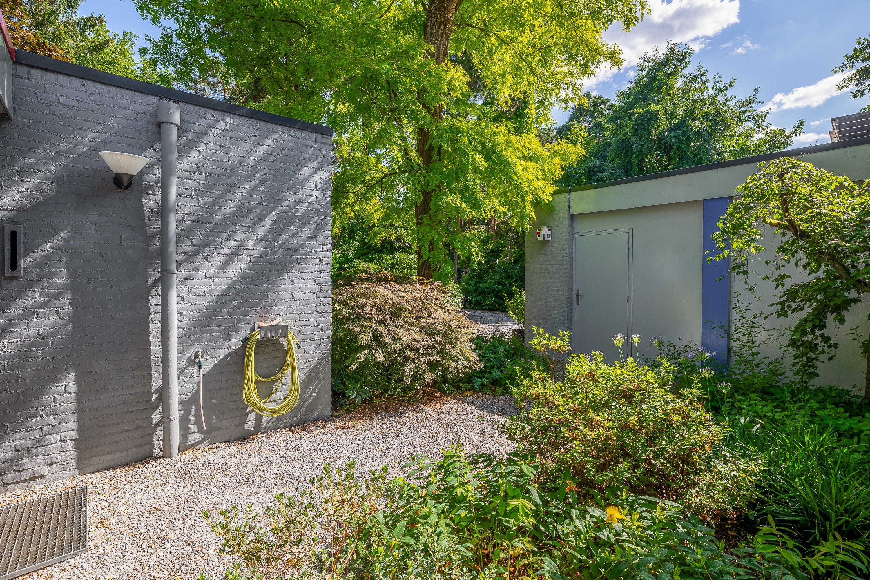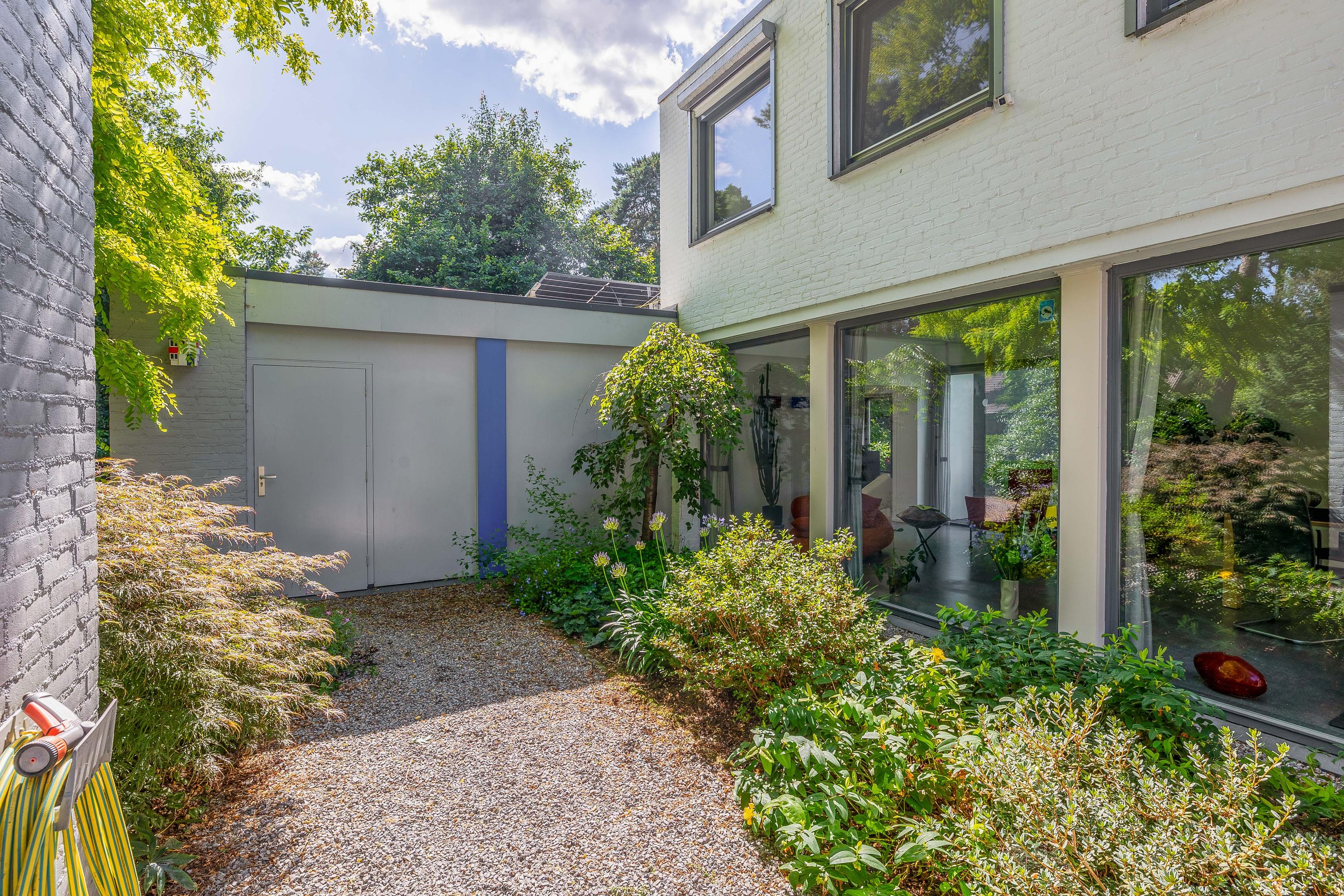 Sellers on their forest villa in Vessem: “We fell in love with the architecture”. After twenty years, the sellers are saying goodbye to their special place on the outskirts of Vessem. “At the time, we fell in love with the shape and the light, among other things”. When the seller visited the house with his then wife in the early 2000s, it was love at first sight. 'The unique architecture appealed to us immediately,' he says. 'The abundance of light and the sightlines made it feel like home right away. Later, the seller discovered that the villa was designed according to the so-called plastic number. This is a theory of proportions in which spaces and lines reinforce each other according to fixed measurements. These principles are also applied within the Bossche School, a post-war architectural movement. ‘Someone came to visit and immediately said: this is one of those houses. I had never heard of it before. But when I looked into it, it made perfect sense.’ He also finds the fifteen stained-glass windows in the style of the famous Dutch artist Piet Mondriaan remarkable. ‘I had them designed. They fit beautifully with the architecture.’
