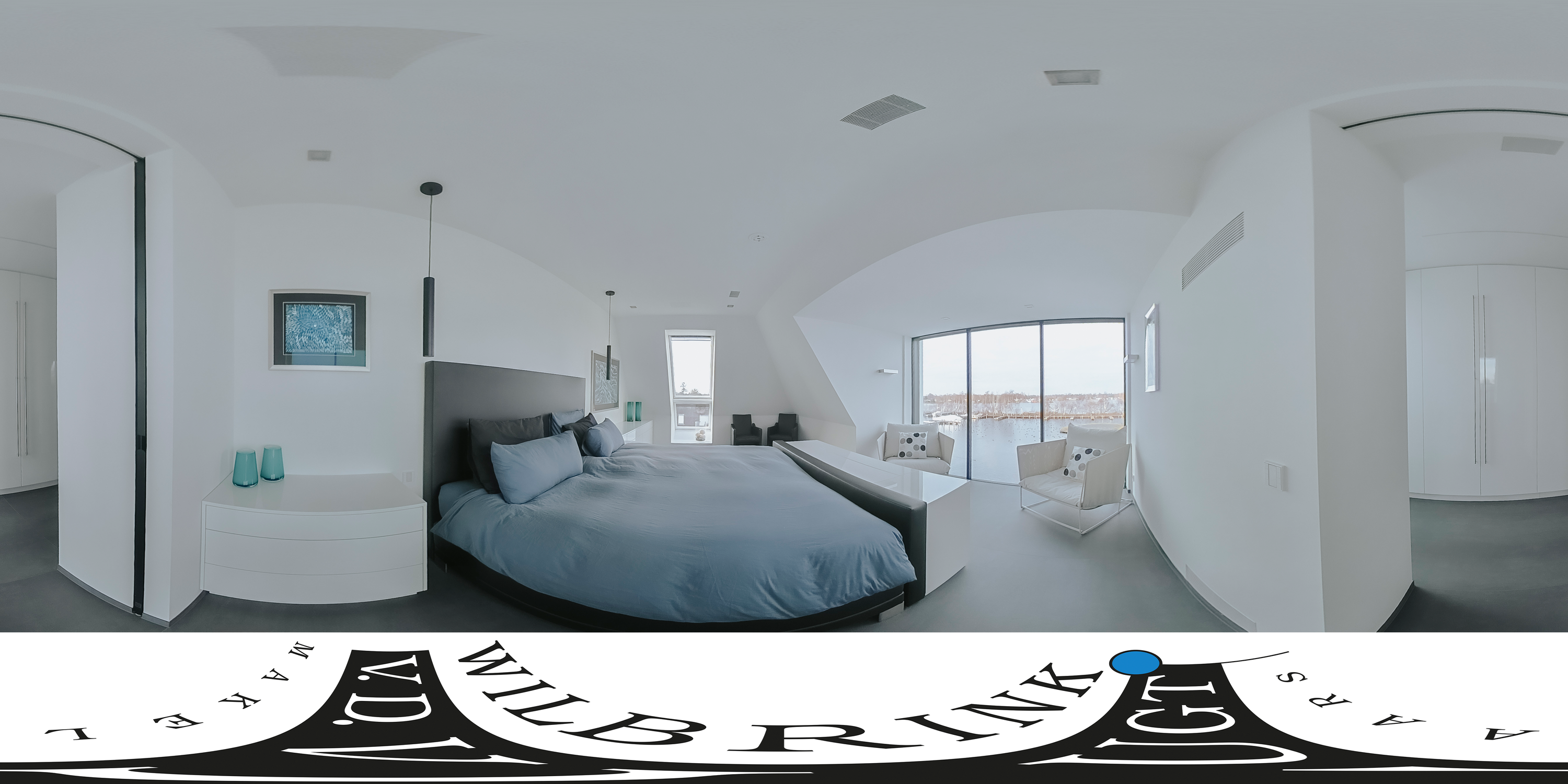 The villa is spread over several levels and has a passenger lift that can reach all levels. The spacious living area is located on the first floor and is characterized by impressive light thanks to floor-to-ceiling windows all around. Inside and outside flow seamlessly into each other here. The luxurious designer kitchen (Lodder) with high-quality built-in appliances forms the heart of the floor, flanked by a spacious dining room and living room with gas fireplaces and stylish, silently sliding steel/glass doors. From the kitchen, you can enjoy phenomenal views of both the harbor and the Vinkeveense Plassen lakes.