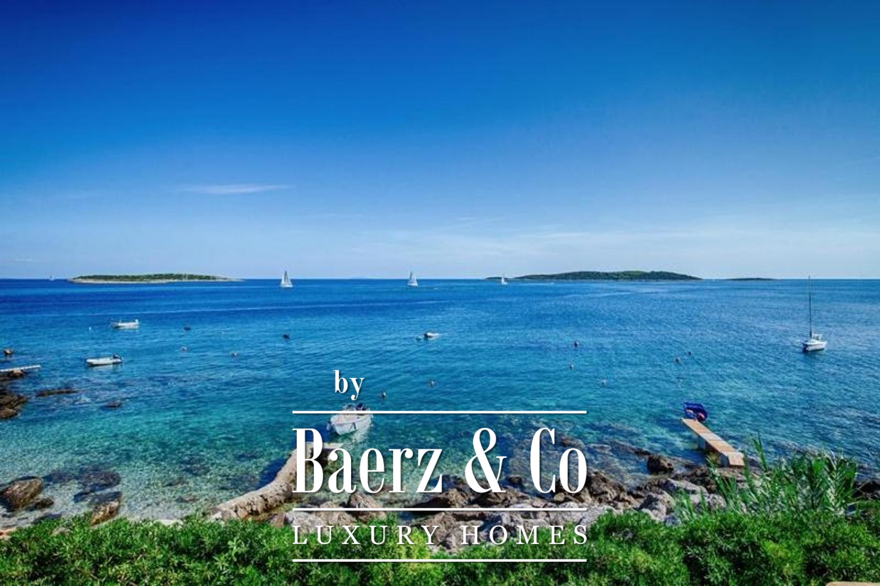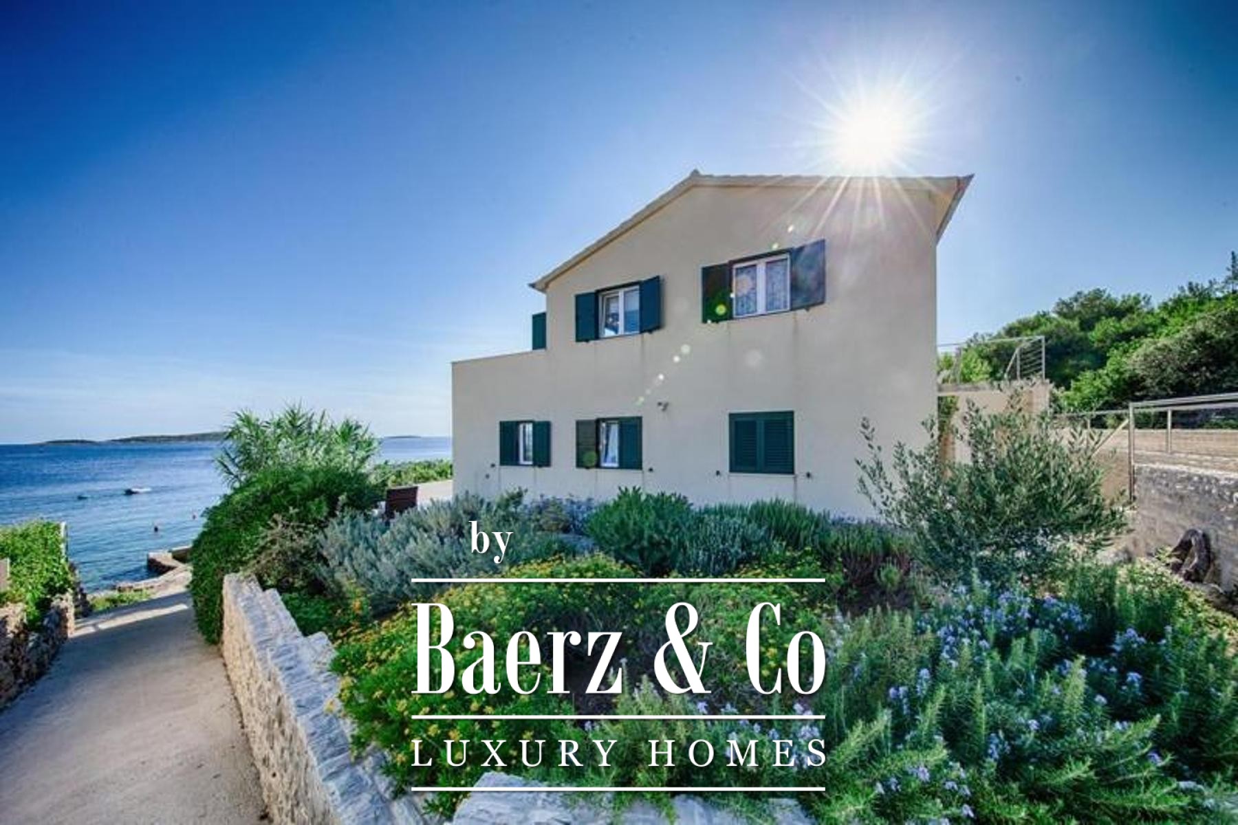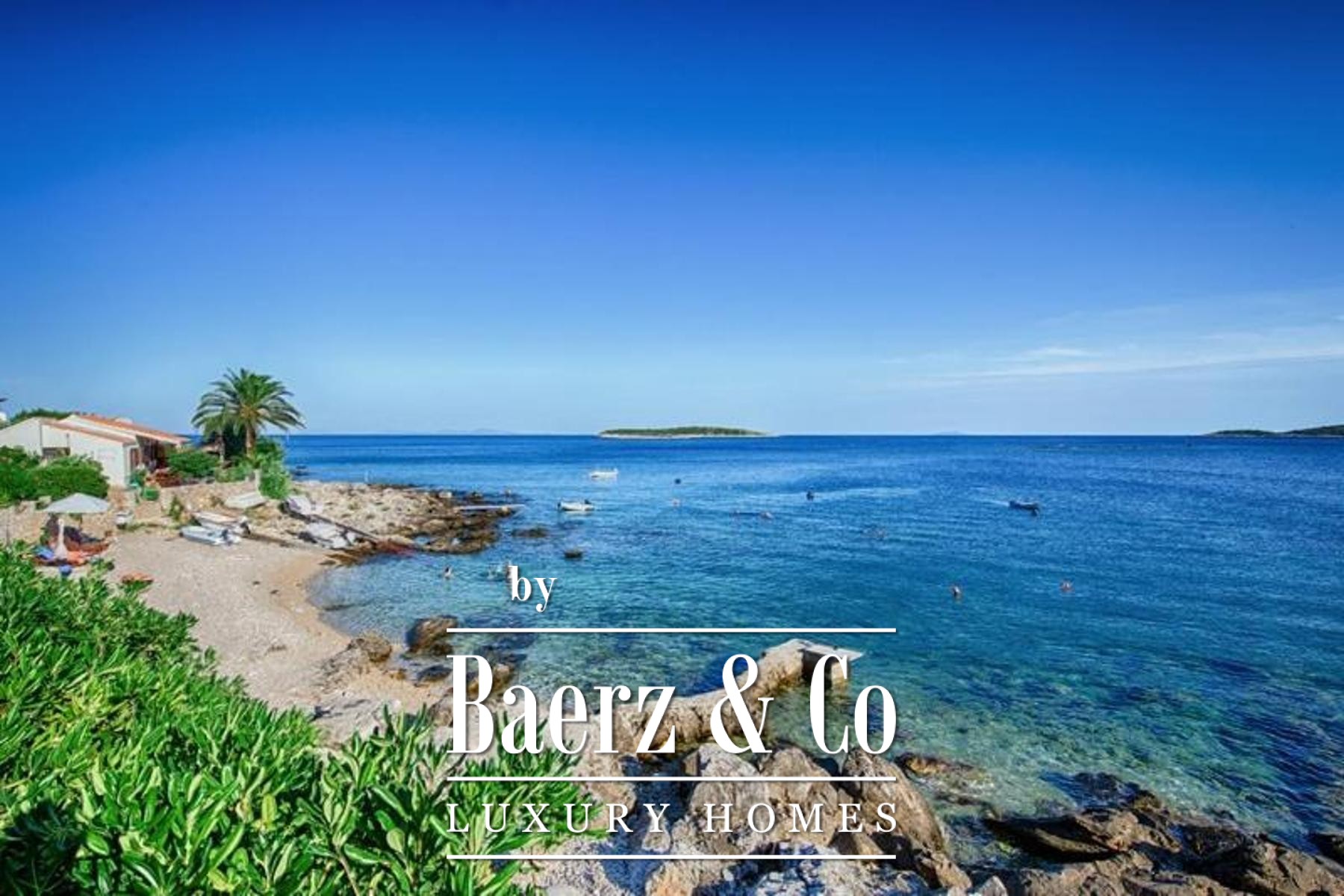 Vis, southern side of the island. A contemporary villa with a net usable area of 275 m² - 240 m² interior space plus 140 m² of terraces (35 m² counted in total area). It is situated on a 584 m² plot in a peaceful and sheltered bay with direct access to the sea. Just a 15-minute drive from the center of Vis and the ferry port.The southern facade of the house spans 12 meters and faces the sea, dominated by glass walls that allow an abundance of natural light and offer a spectacular and priceless view of the open sea and the islands of Lastovo, Sušac, and Korčula from almost every room.The house consists of two residential units, each with a spacious