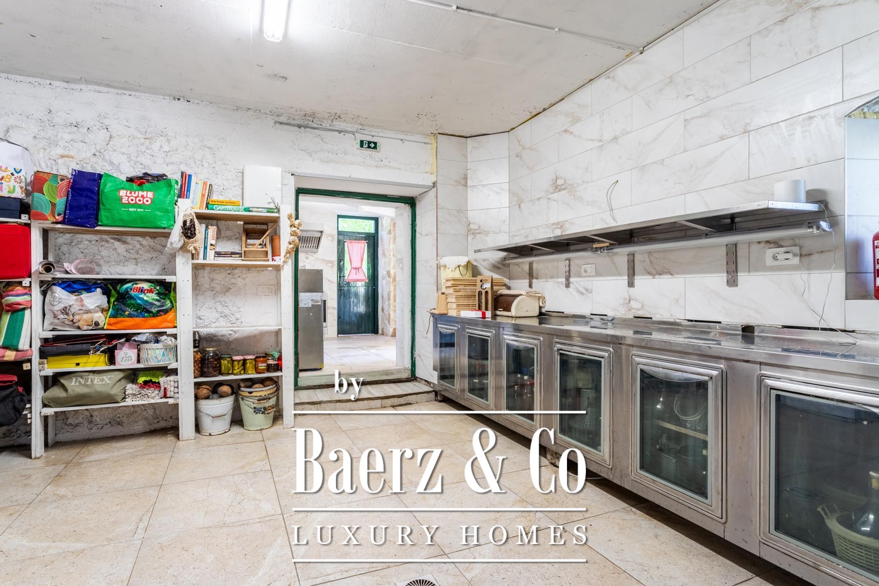 sunbathing area made of natural pebbles. The entire pool area is discreetly enclosed by stone walls and lush natural greenery, ensuring complete privacy.The estate also offers numerous additional amenities for complete enjoyment. There is a modern bocce court, a spacious garden with olive trees, and a dedicated space for animals. Three dilapidated houses offer exceptional potential for further renovation and expansion. For gourmet experiences, there is a furnished tavern, a small wine cellar, and a professionally equipped kitchen. This exceptional property is an ideal opportunity for multiple families or one seeking a spacious home with opportunities for relaxation, entertainment, and creating unforgettable memories in the heart of Dalmatia.