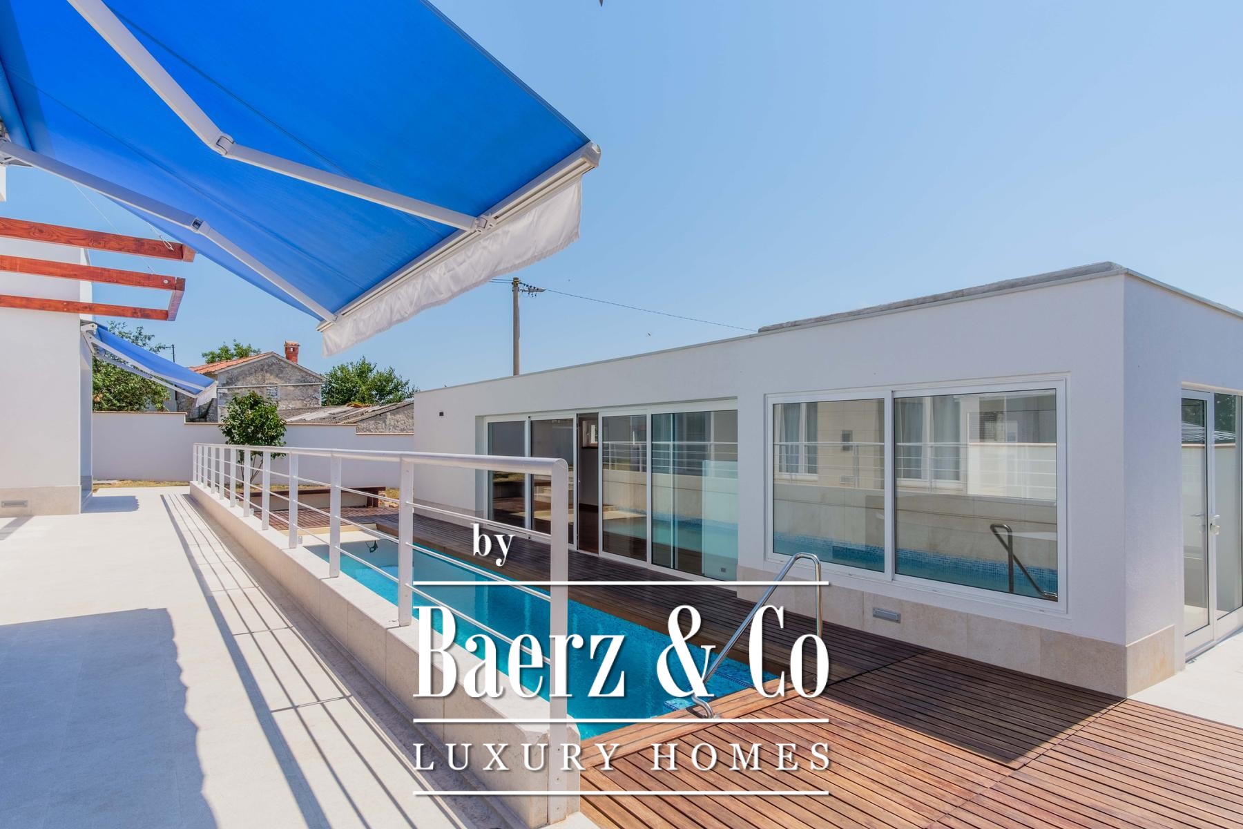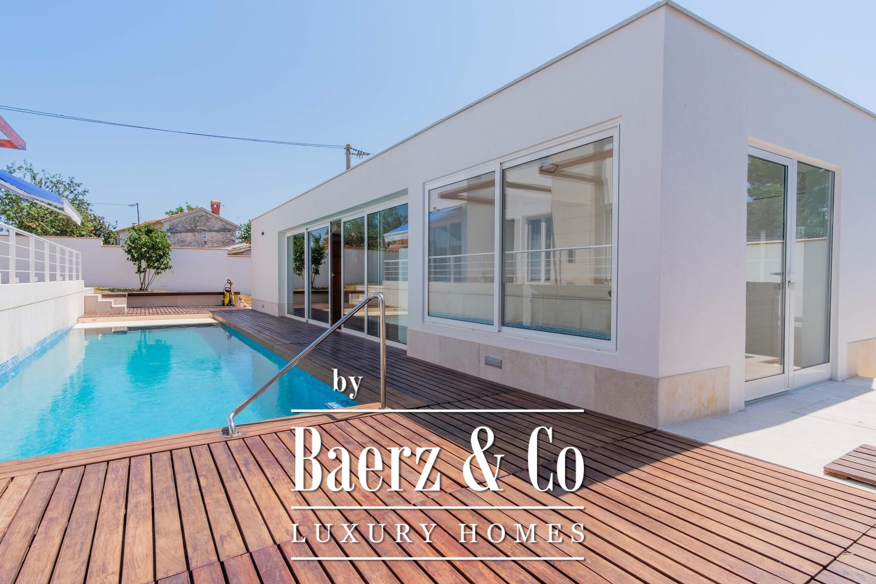 Villa Vrsar offers a modern design with a luxurious interior, crafted from high-quality materials across 344 m². This villa in Vrsar presents an ideal layout of generous spaces, complemented by a tranquil sea view and a setting designed for both privacy and ease.