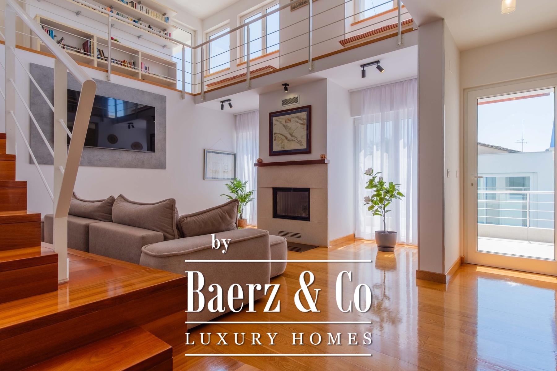Extending over two floors, the ground level features a spacious living room enhanced by a Piazzetta fireplace, a distinct kitchen with dining area and pantry, along with two bedrooms each with its own bathroom and a shared shower cabin. Upstairs, a dramatic open gallery flows along wall surfaces, amplifying the sense of retreat and comfort. Two flexible rooms on this level, currently configured for living, bathrooms, and storage, include kitchen and gas installations, allowing conversion into separate apartments if required. A terrace completes this upper space.