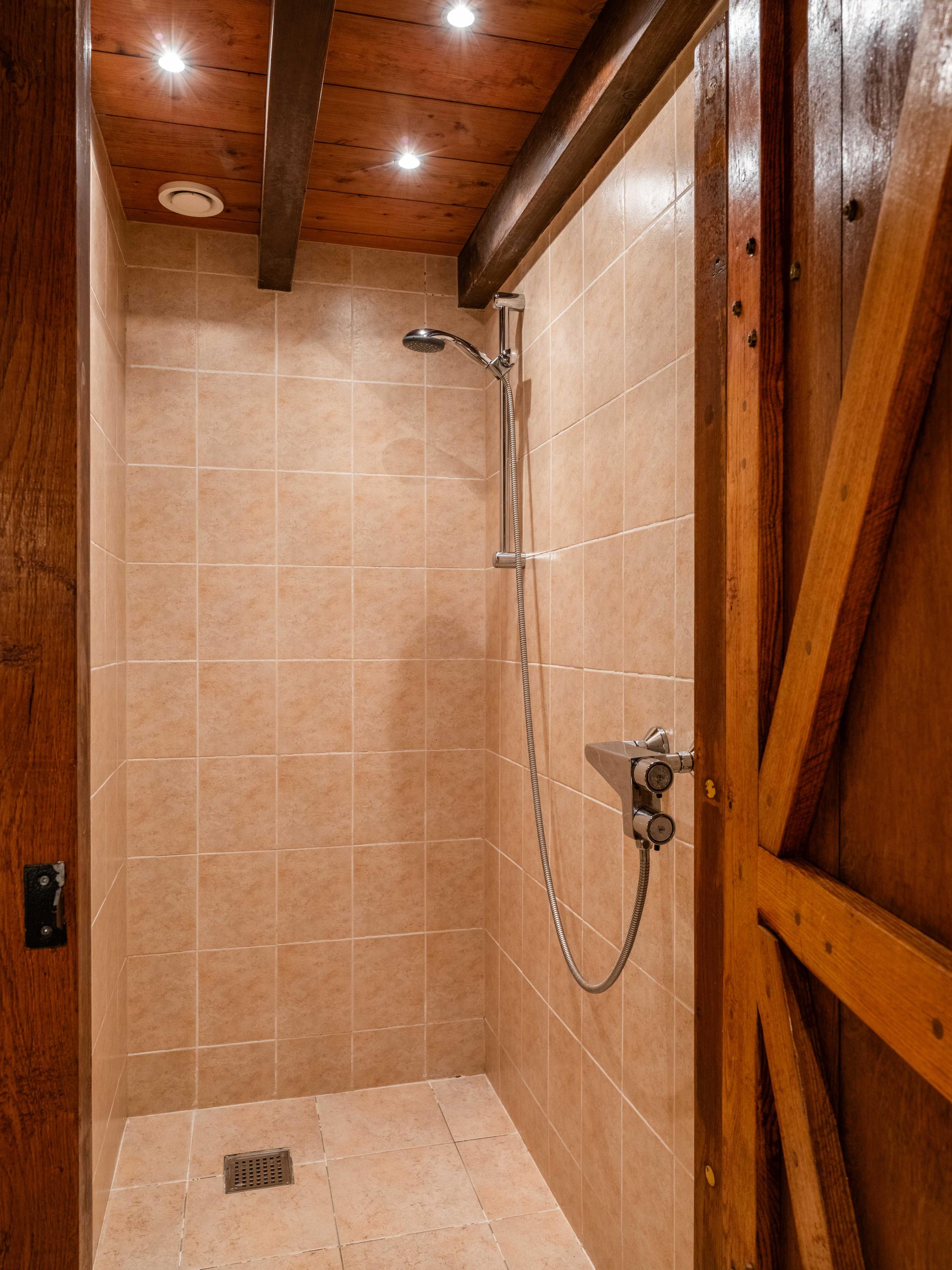 The 224 m² residence embraces country style with contemporary comfort. Full insulation, energy class A, underfloor heating, and a synthetic thatched roof ensure year-round ease. On entry, you are welcomed via an entrance hall with cloakroom and storage, opening to a light-filled dining area and an open kitchen. Authentic materials—beamed ceilings, built-in cabinetry, and an English cooker—delineate the spacious kitchen, at once inviting and functional, flowing into a generous living room where natural light plays across water and garden, anchored by a wood-burning stove.