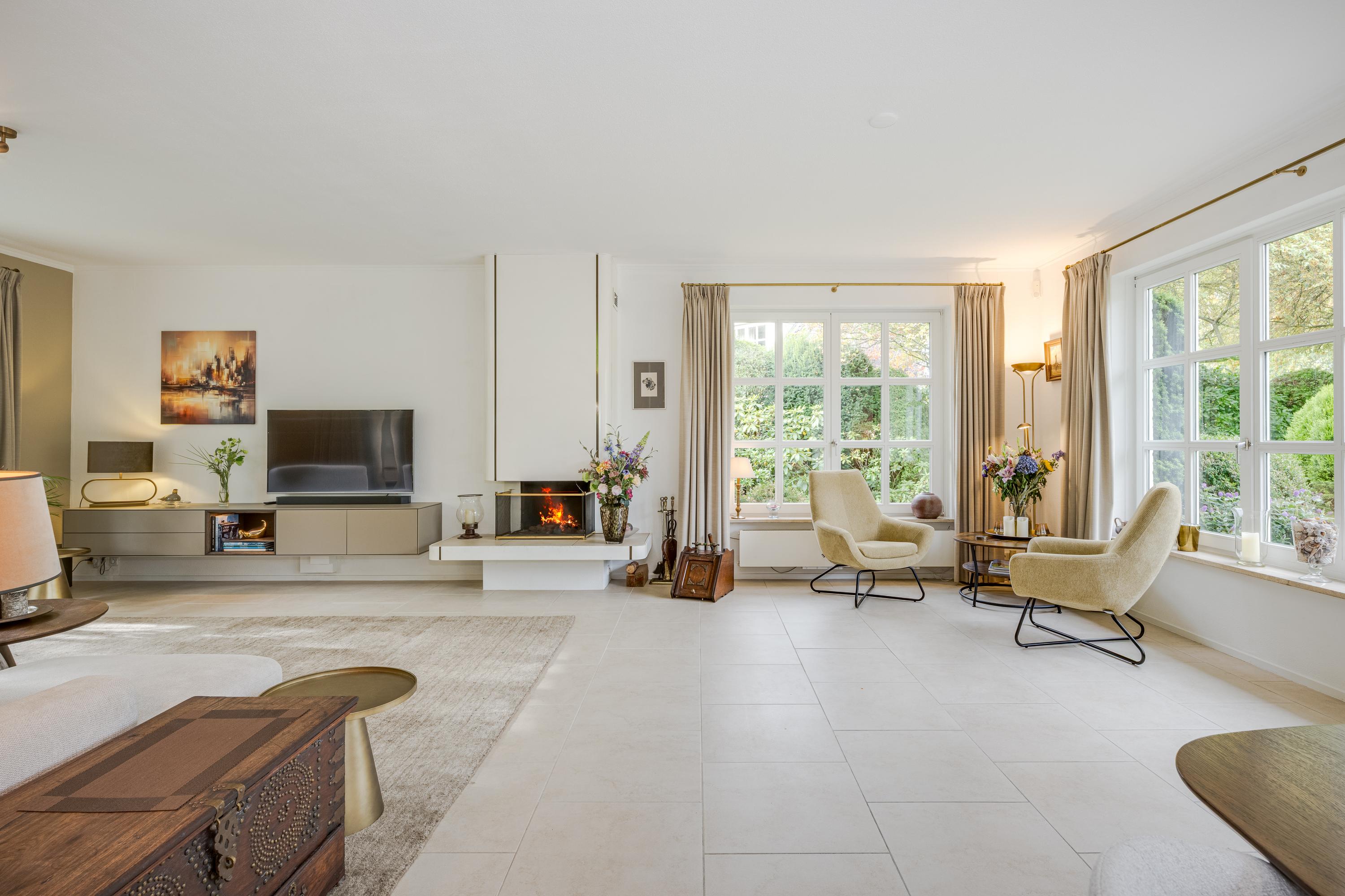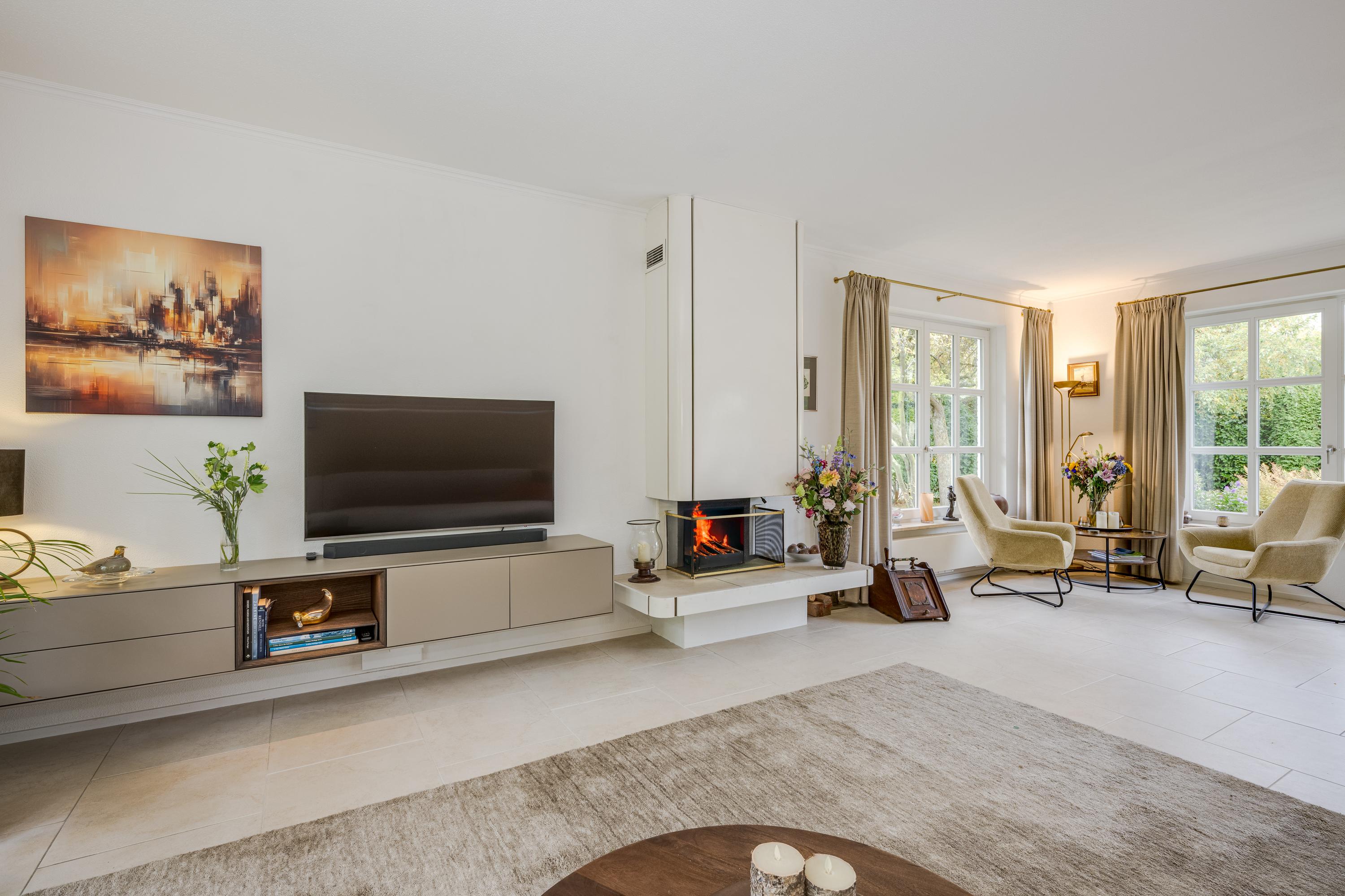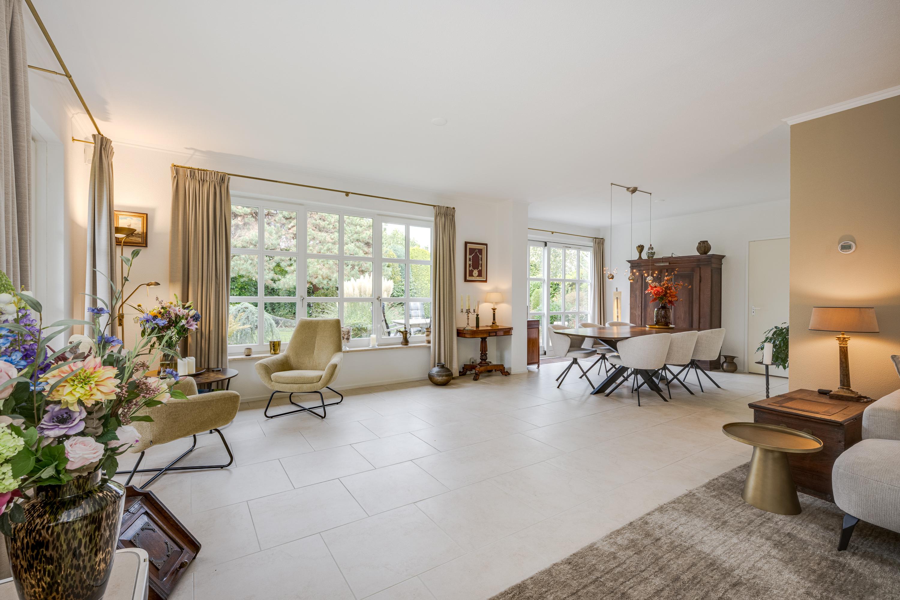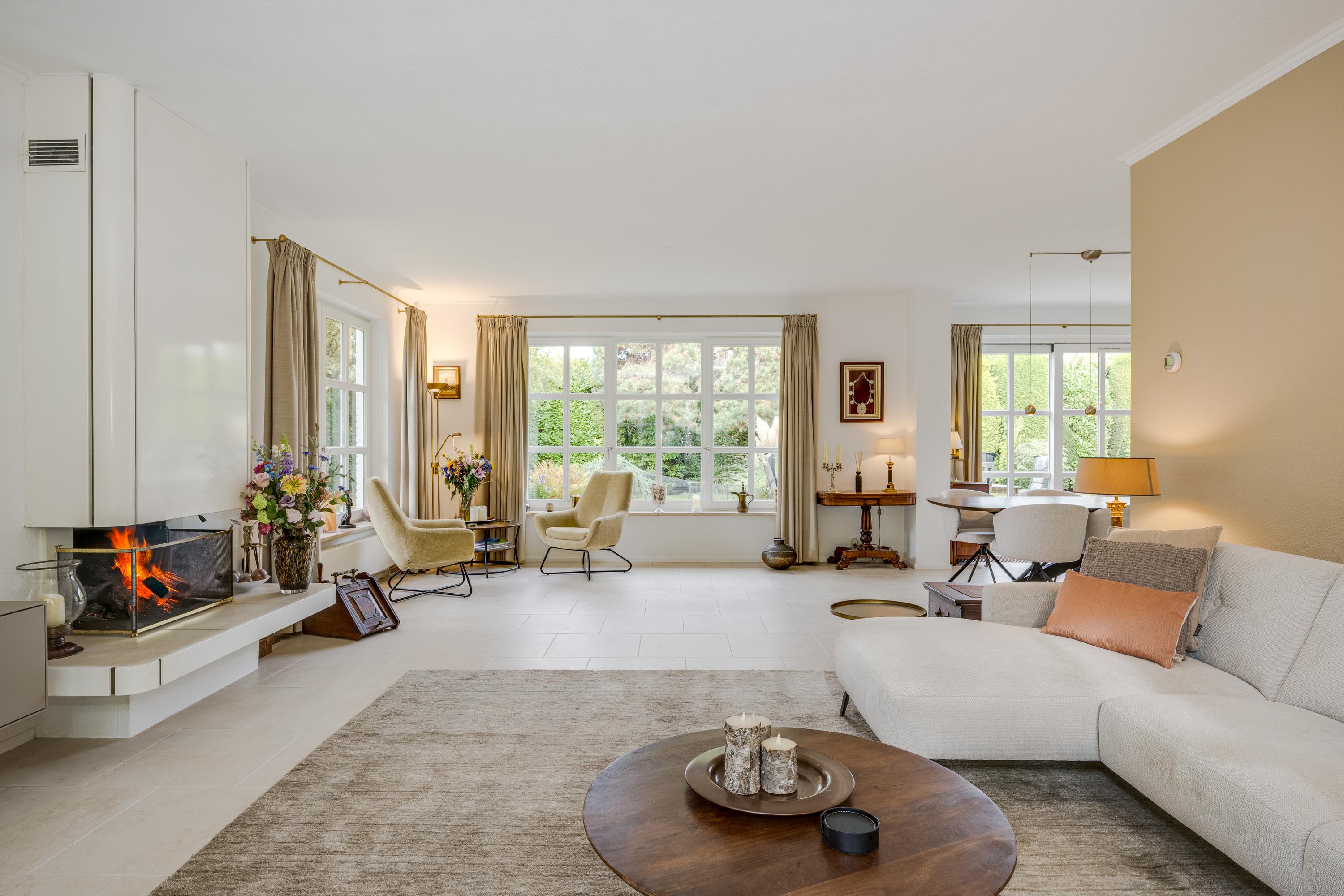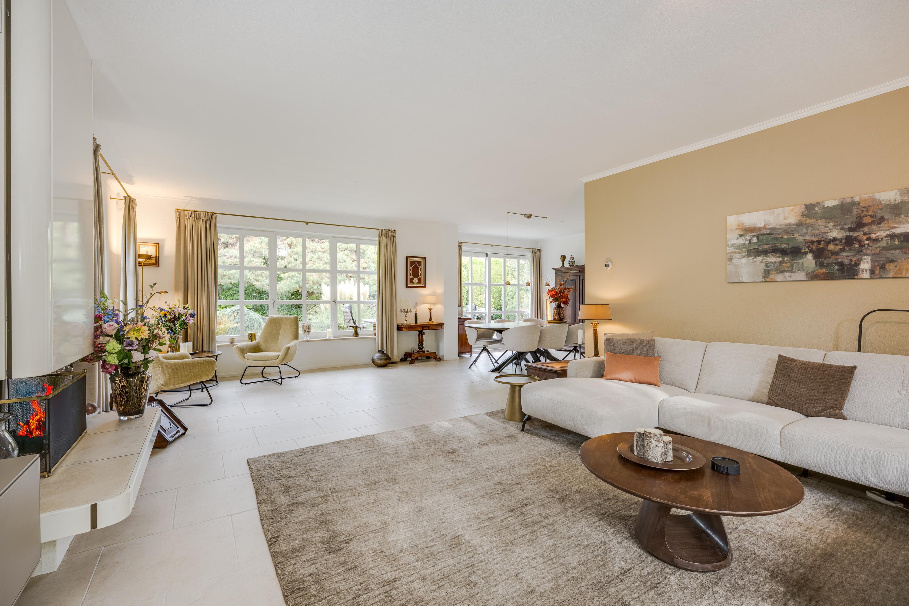Detached villa Warmond invites an elevated lifestyle at the edge of nature in the tranquil enclave of Hagheweide. This four-bedroom, two-bathroom villa stands on a 754 m² plot, where mature landscaping and thoughtfully designed terraces provide privacy and a verdant outlook throughout the seasons. The living area spans approximately 184 m², incorporating a luminous living and dining space of 55 m² framed by large windows and sliding doors. Here, the fireplace brings a sense of intimacy while seamlessly connecting to outdoor settings for gatherings or quiet reflection.