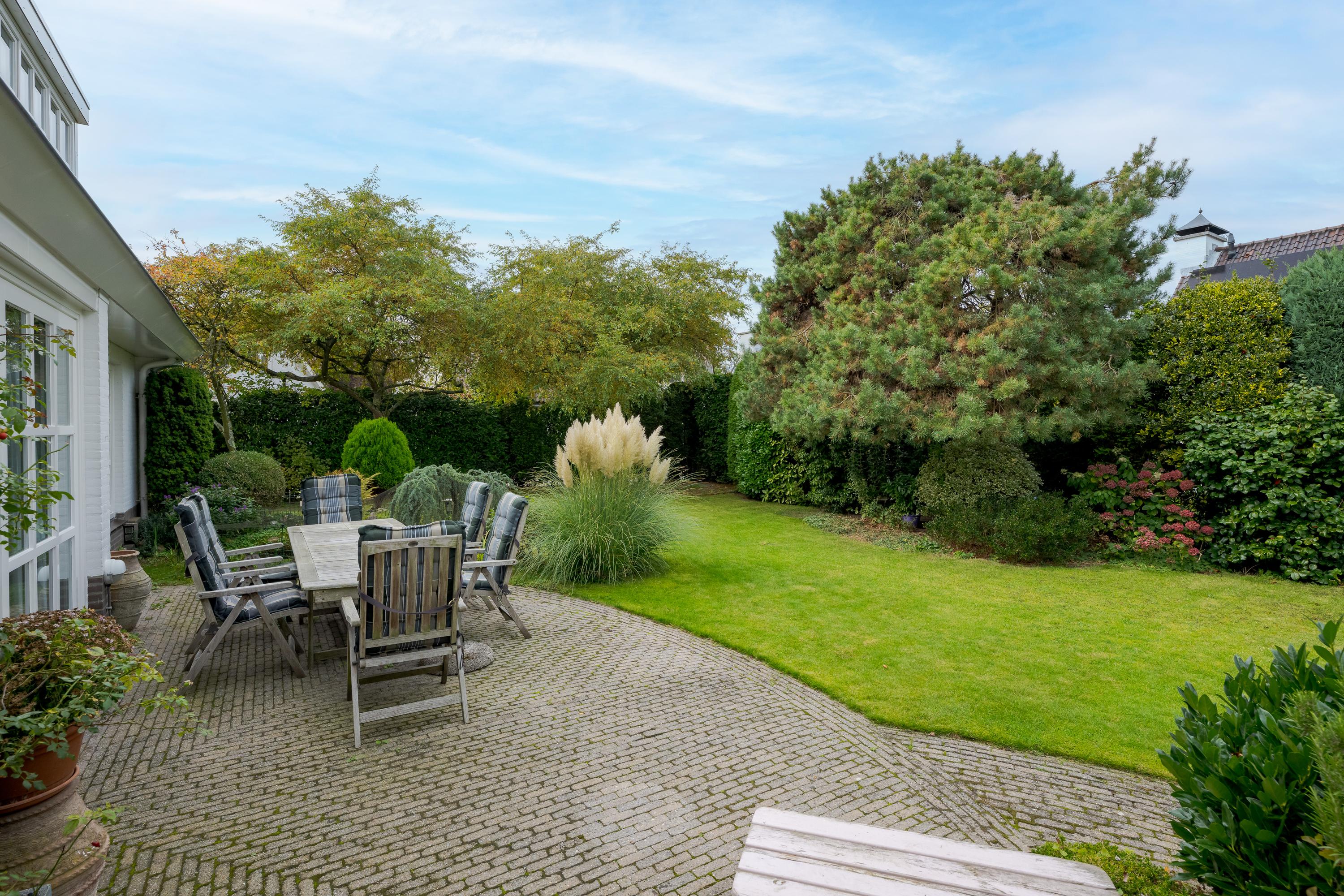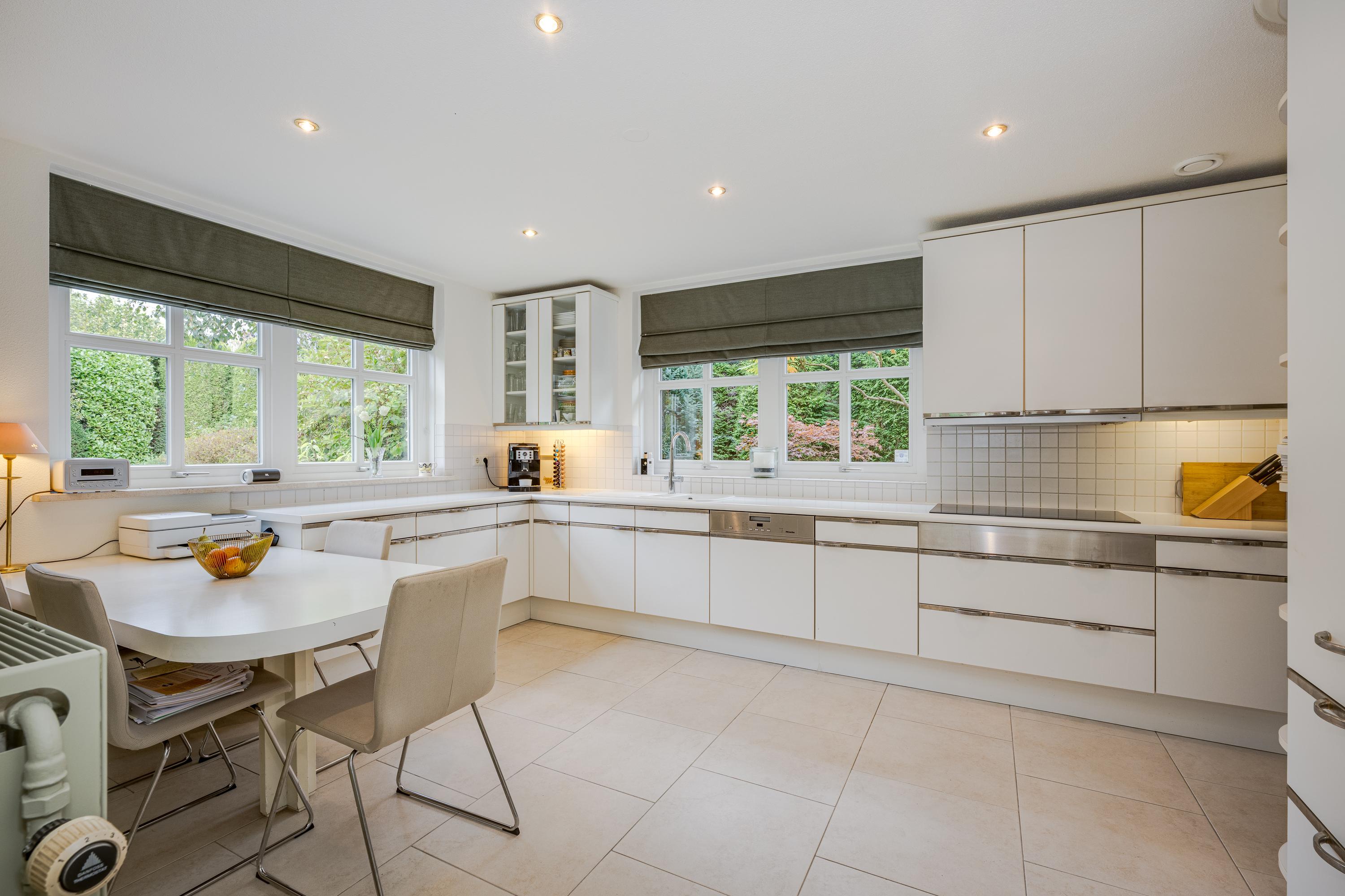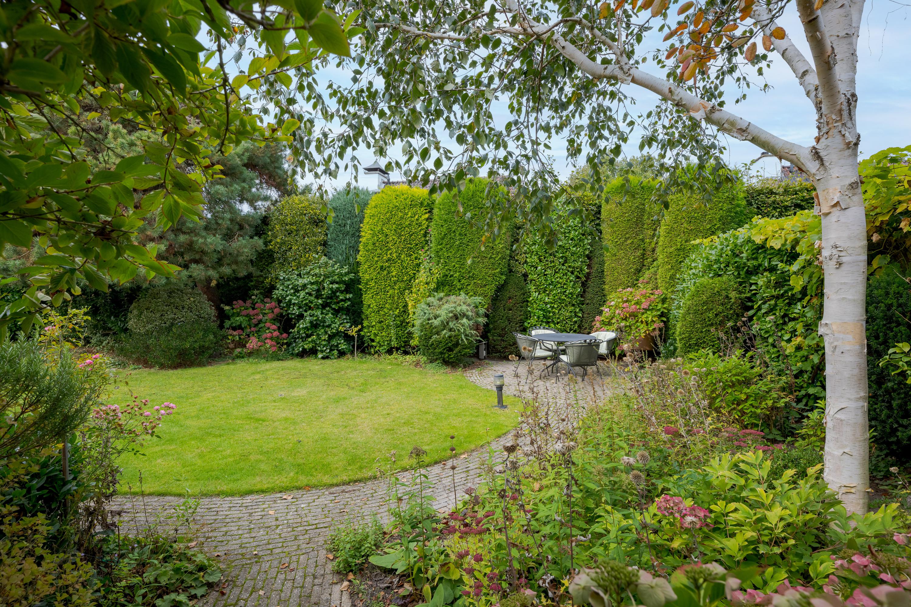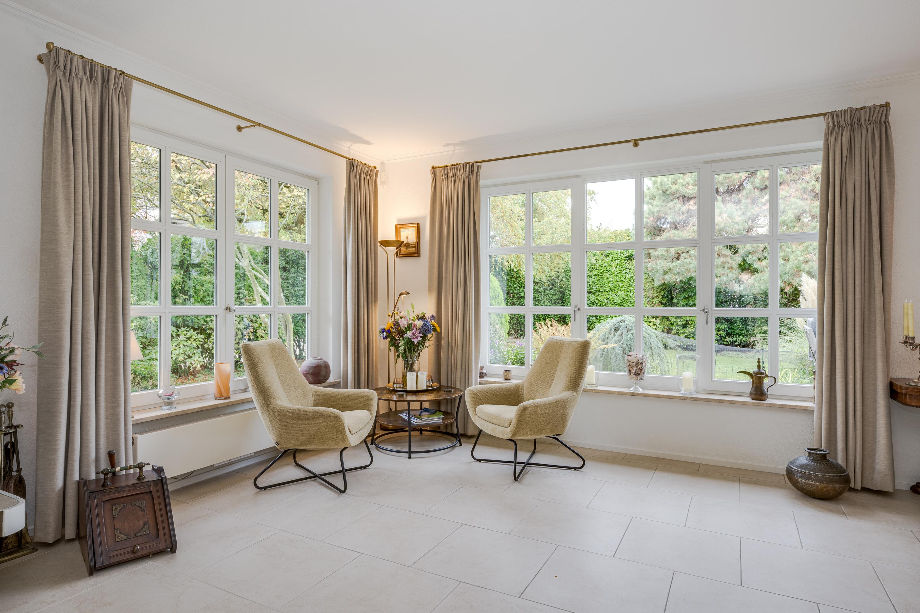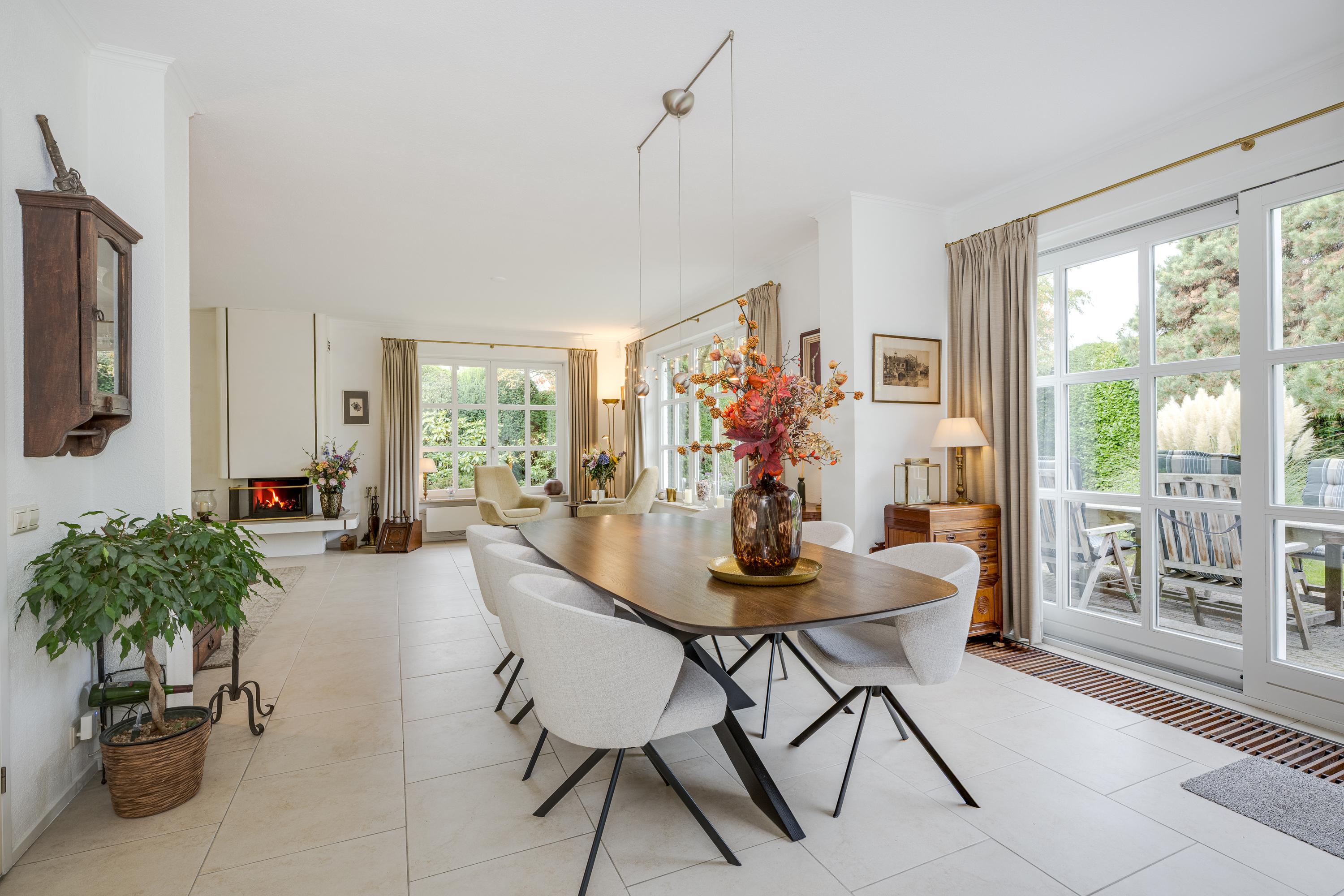 Detached villa Warmond invites an elevated lifestyle at the edge of nature in the tranquil enclave of Hagheweide. This four-bedroom, two-bathroom villa stands on a 754 m² plot, where mature landscaping and thoughtfully designed terraces provide privacy and a verdant outlook throughout the seasons. The living area spans approximately 184 m², incorporating a luminous living and dining space of 55 m² framed by large windows and sliding doors. Here, the fireplace brings a sense of intimacy while seamlessly connecting to outdoor settings for gatherings or quiet reflection.