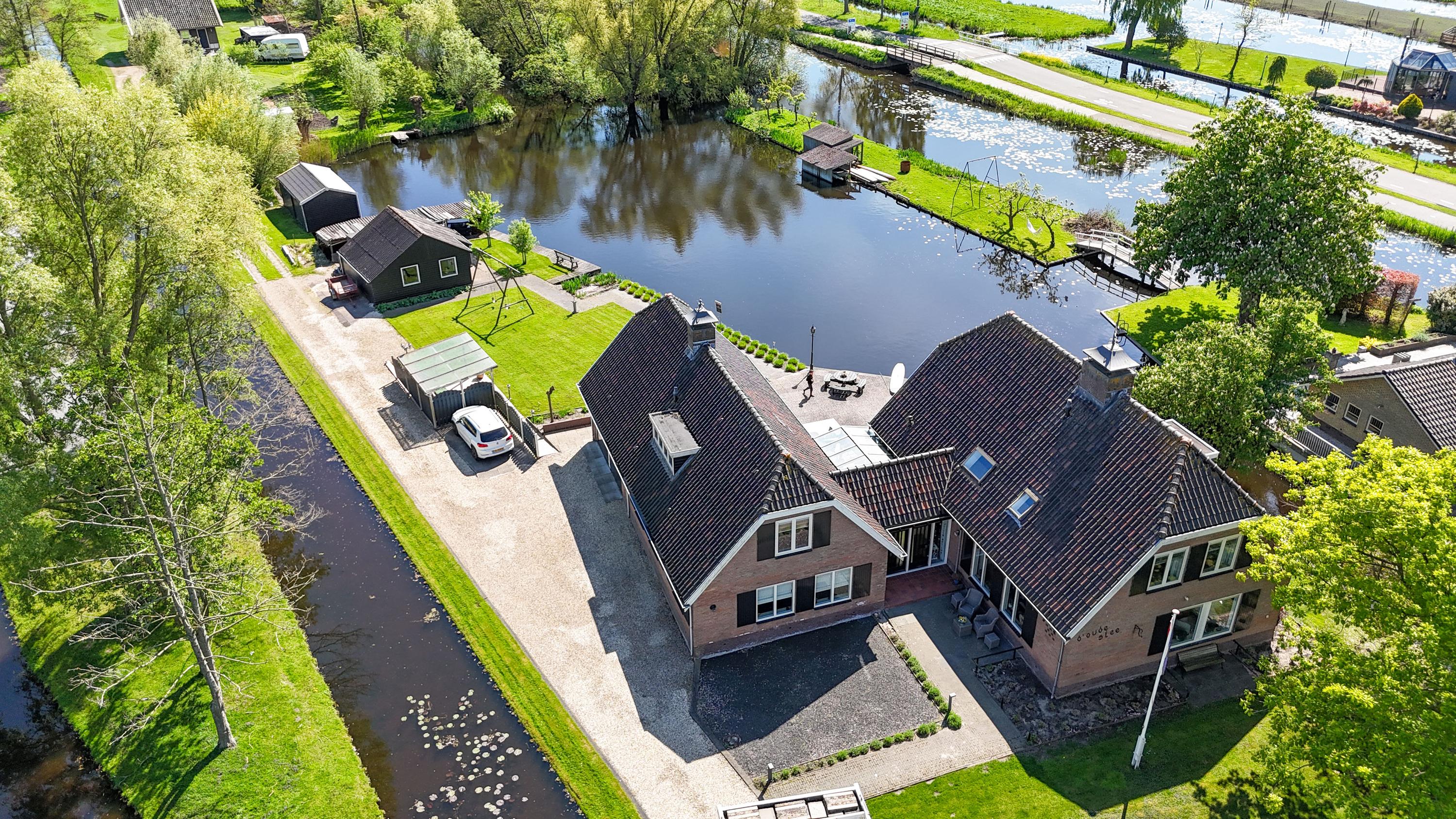 Villa Wilnis is a rare dual residence opportunity, offering an exceptional living environment for those seeking privacy and scenic waterfront access. This villa in Wilnis features a total living area of 330 m² on a generously proportioned 3,074 m² plot. The property is composed of two semi-detached homes, each accessed via a private drawbridge and surrounded by water and verdant landscape—a secluded retreat, yet minutes from Utrecht, Amsterdam, and the Vinkeveense Plassen.