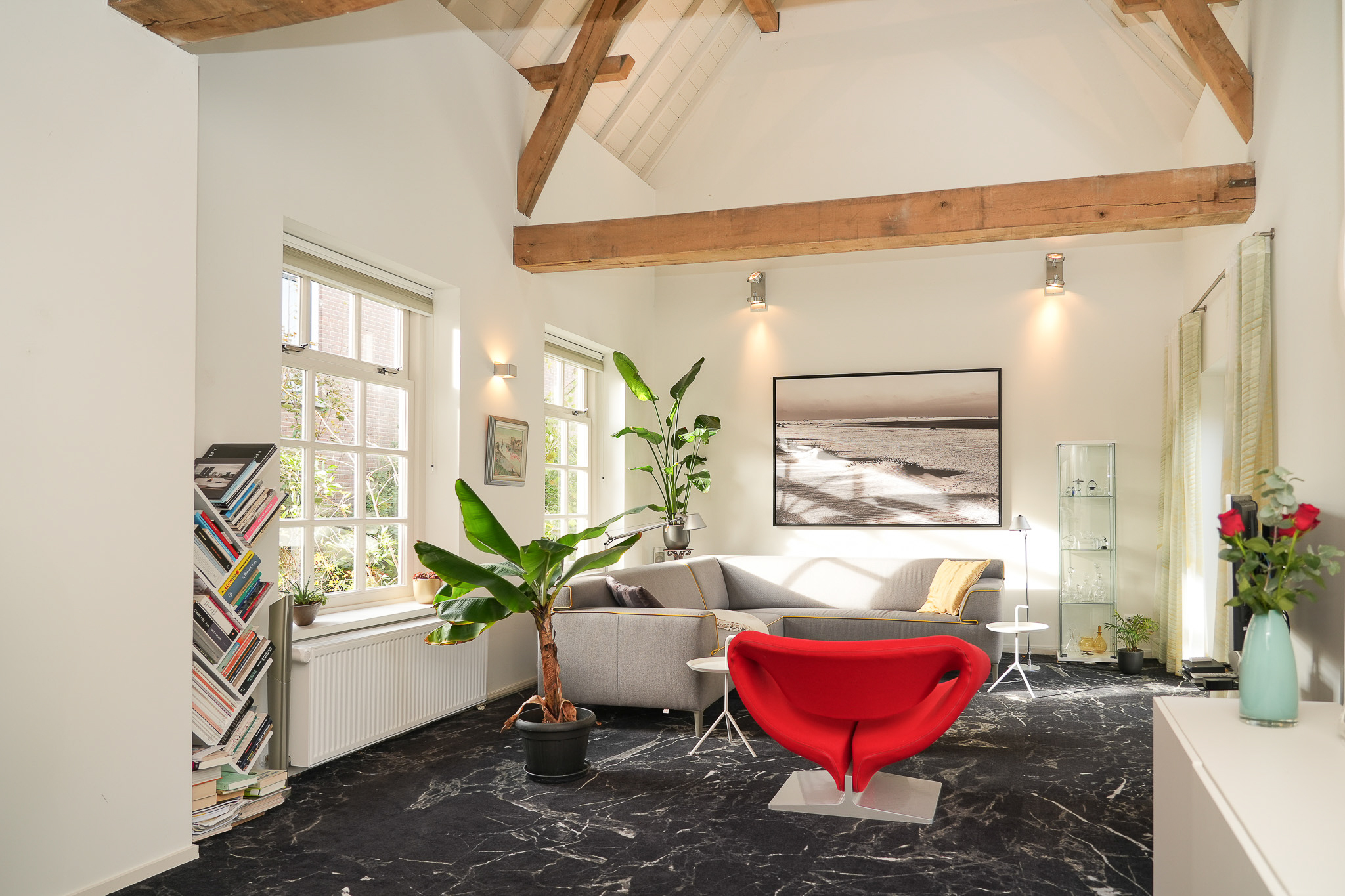 Tolstraat 21 complements with a separate studio, acoustic insulation, and private entrance, ideal for gallery or atelier. Energy class C underlines thoughtful upgrades including roof and wall insulation, HR glazing, underfloor heating in select rooms, and nineteen solar panels. Amenities include fibre optic internet, an alarm system, and natural ventilation.