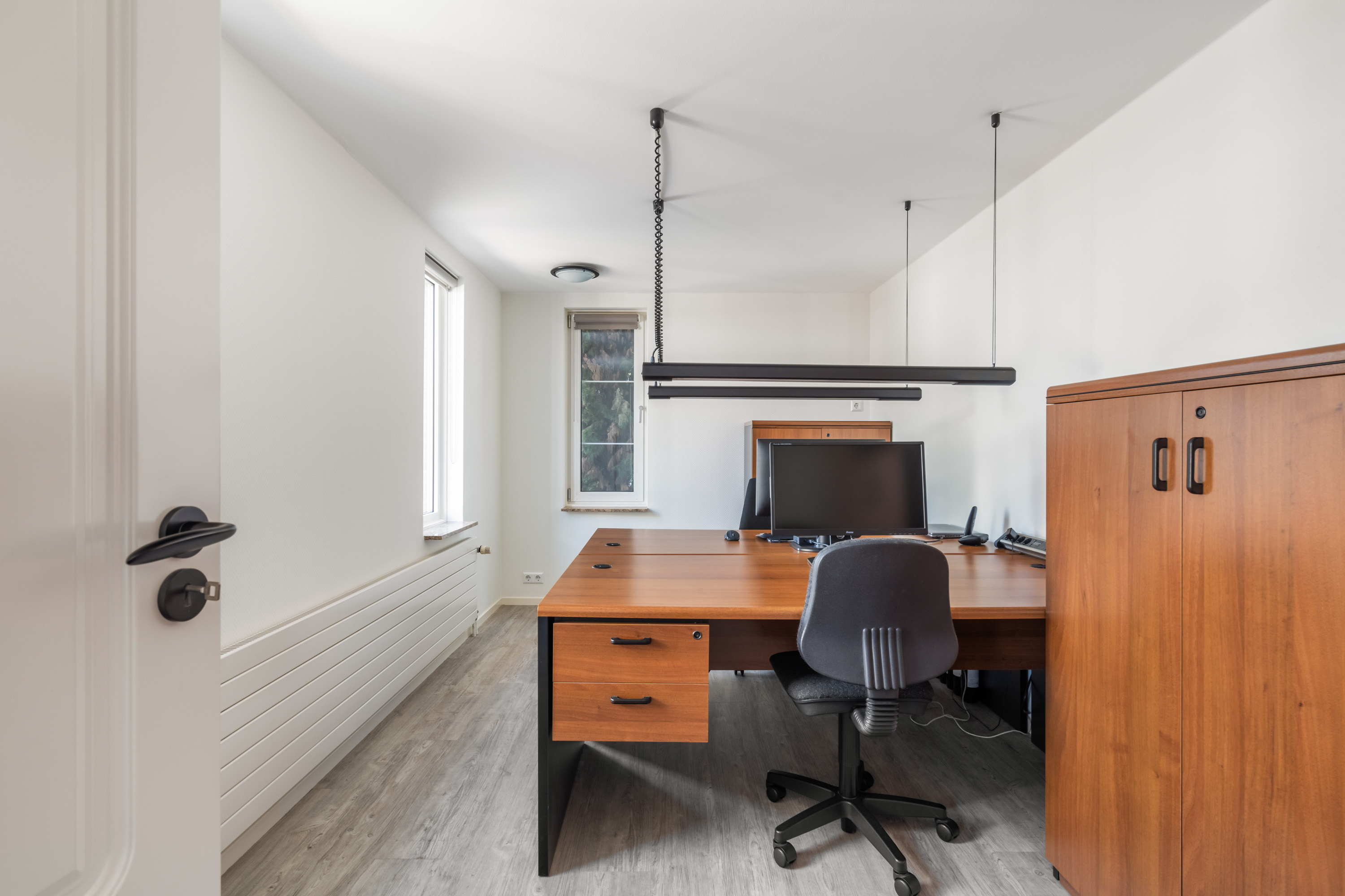 At the rear of the house, you'll find a spacious and light-filled office with PVC flooring and windows on all sides. Ideal for working from home, a private practice, or creative hobbies. This space is accessible via the side entrance, making it perfect for business visitors.