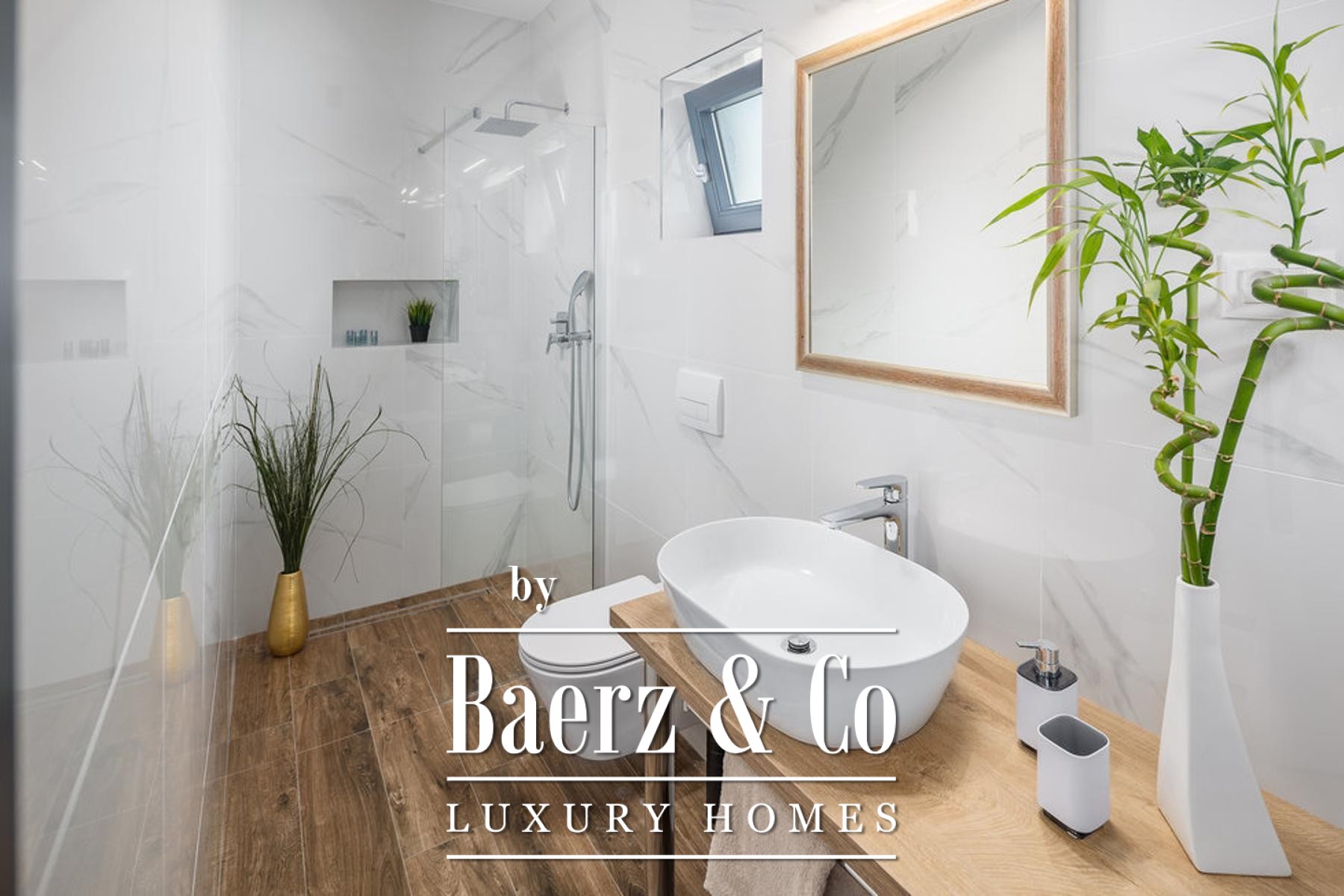 Upstairs, three tranquil bedrooms each grant en suite luxury and direct terrace access, drawing in natural light and uninterrupted views of Istrian nature. Outside, a heated pool of 38.50 m², sunbathing terrace, and a shaded area with barbecue encourage outdoor gatherings. Underfloor heating, air conditioning throughout, and first-class parquet and ceramics underscore the villa’s devotion to quality, with designer furnishings providing a contemporary yet timeless feel. This is a villa for sale in Central Istria that balances discretion and wellbeing at the heart of rural Croatia.