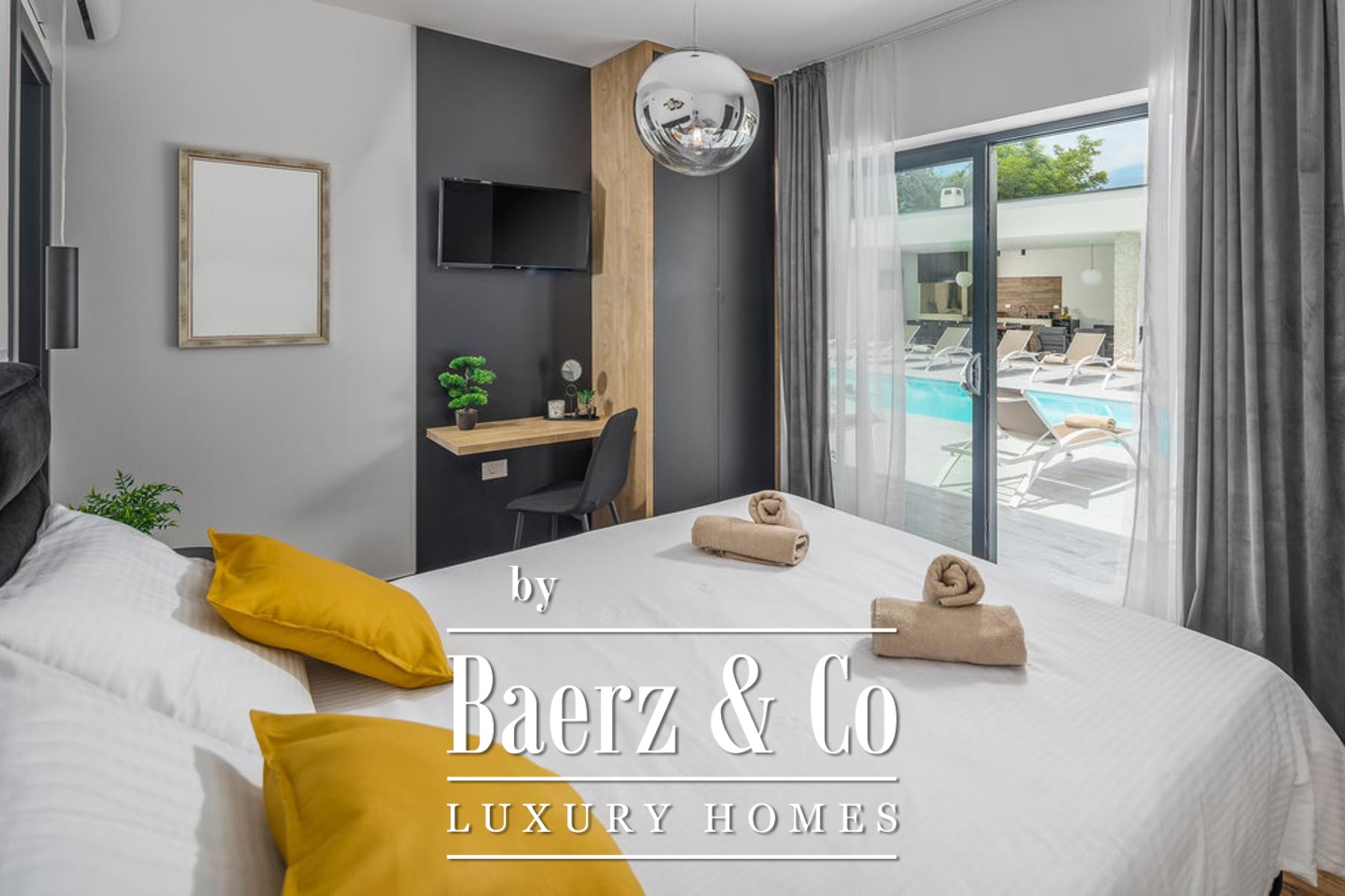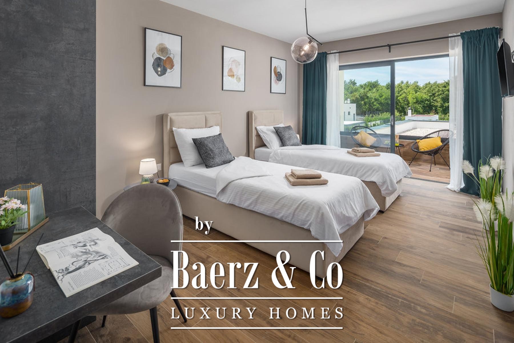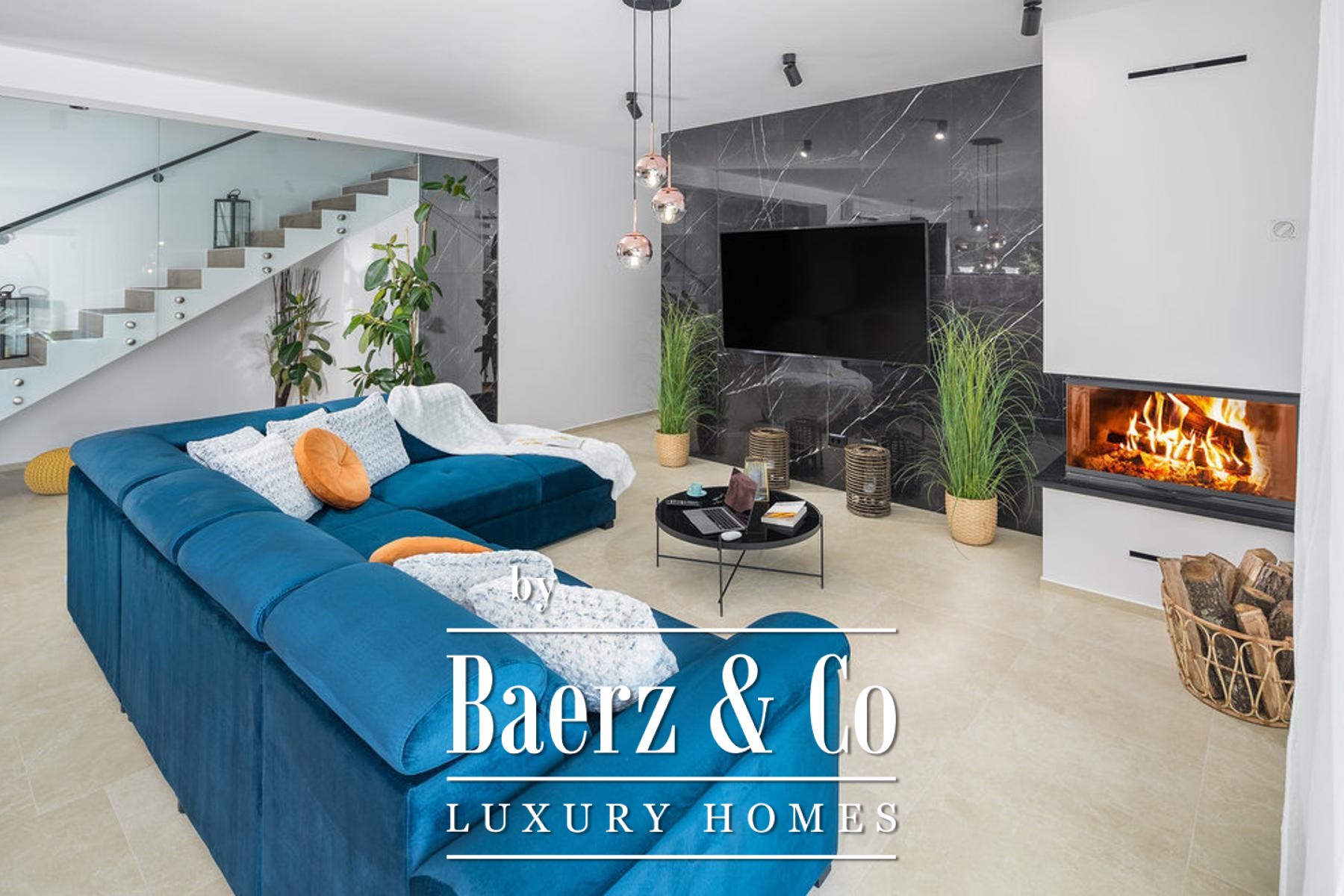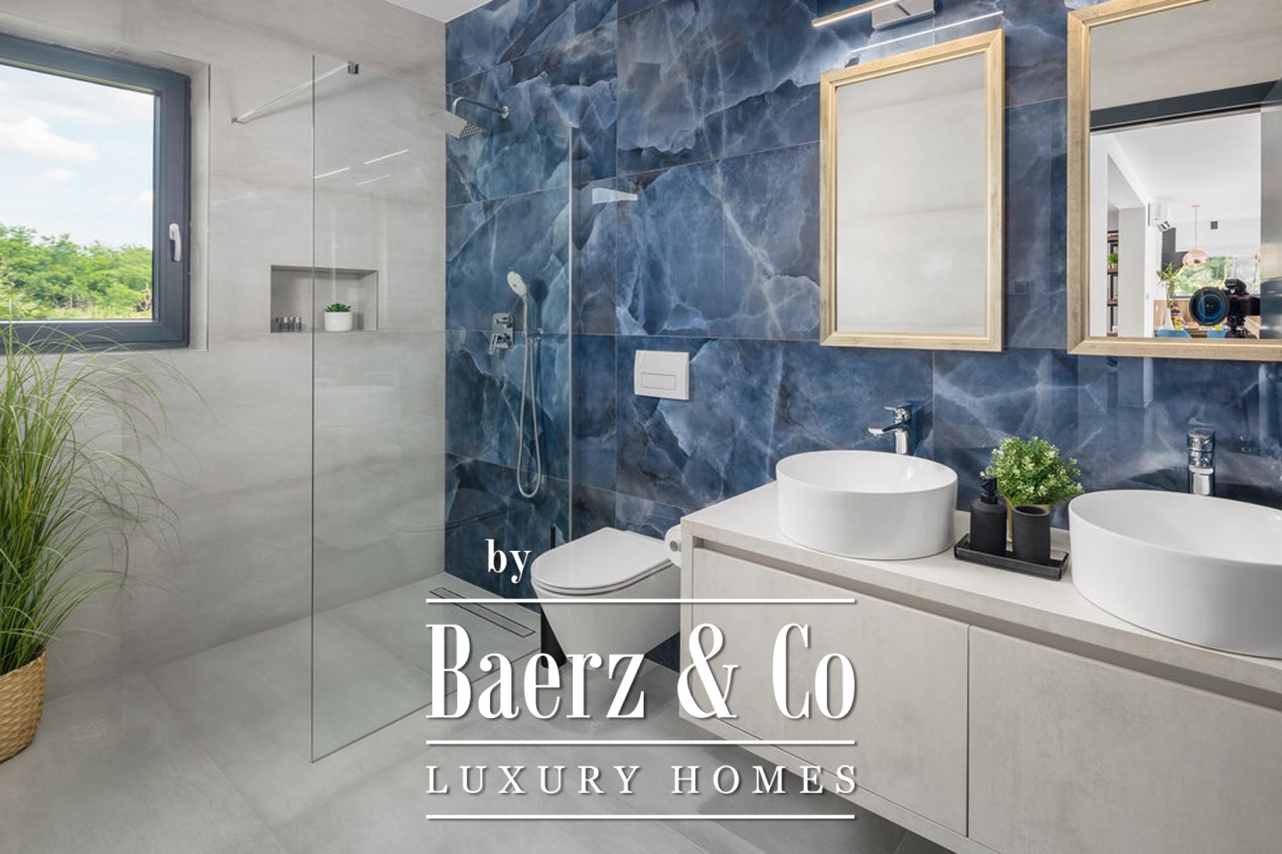 Villa Žminj Central Istria is a modern residence set in the quiet village of Šivati, offering 308 m² of living space complemented by a separate 34 m² guest building. Designed for privacy and comfort, this villa welcomes you with understated elegance, blending high-calibre construction and refined materials into daily life.