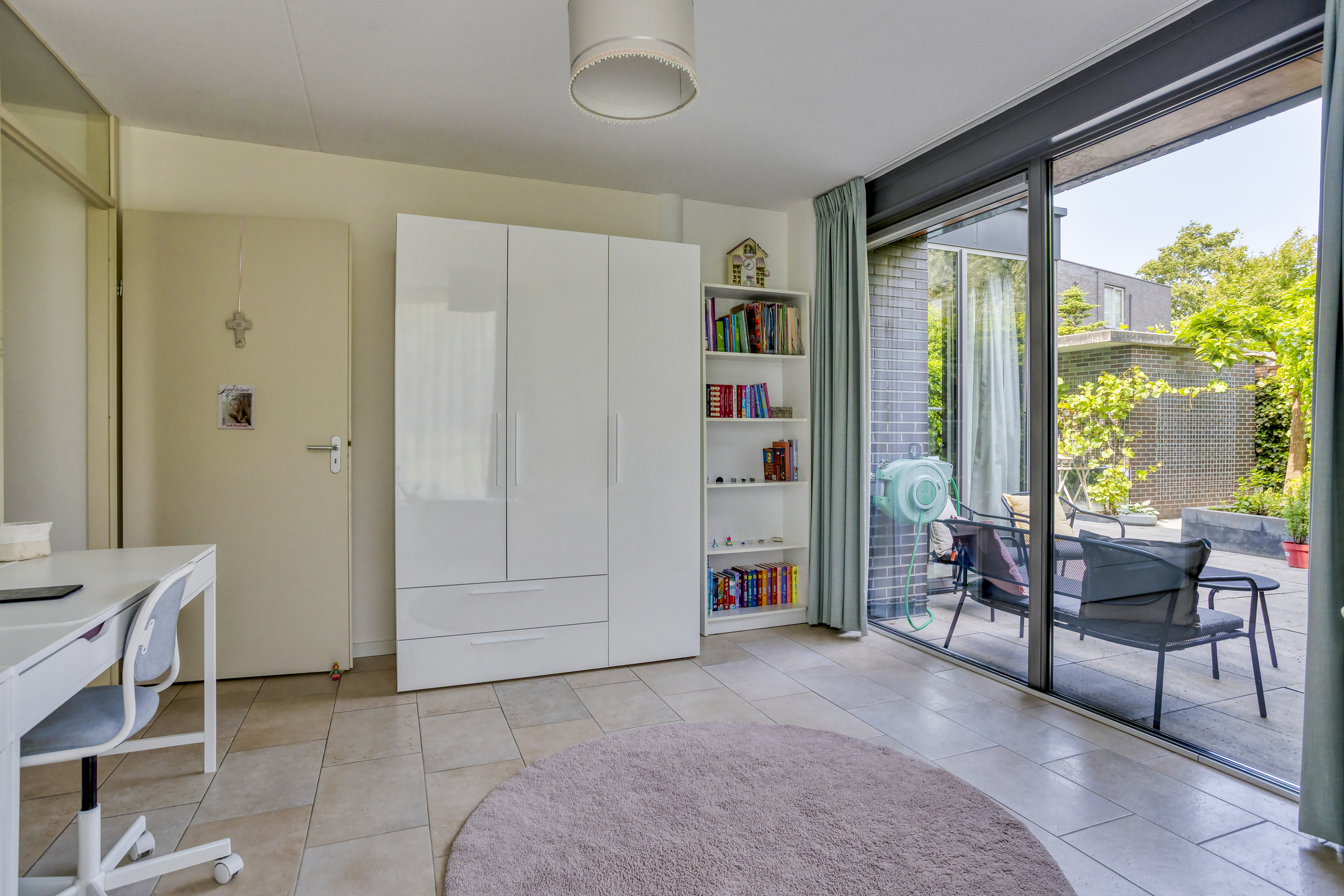 The living spaces are generously proportioned and filled with natural light thanks to large windows. Each residence has its own living room with views of the greenery surrounding the house. The kitchens are practically designed and connect well with the living areas. In total there are three modern bathrooms, and thanks to the distribution over four living levels there is always a quiet place to be found. The bedrooms are spread across all floors, offering space for large beds, desks and wardrobes. The current owners have maintained the property very well; the finish is sleek and contemporary. Thanks to HR++ glazing, aluminium window frames, roof, wall and floor insulation, and 12 solar panels, this home is also energy efficient (energy label A).